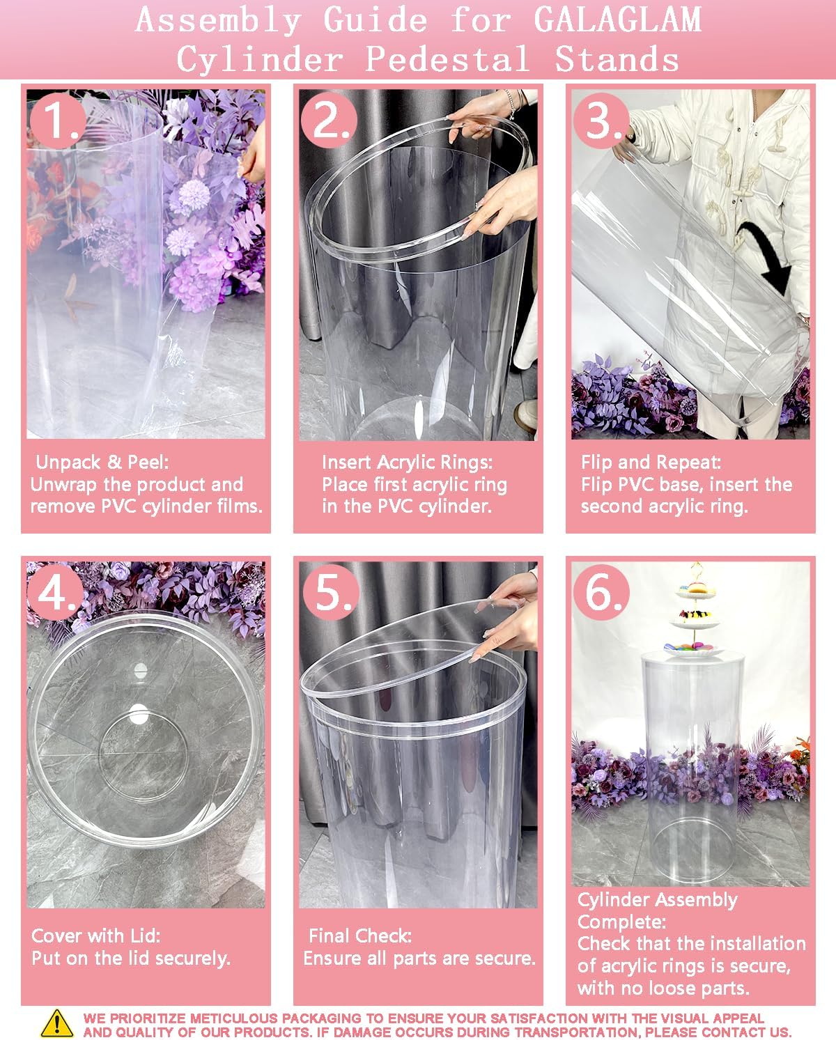 EASY ASSEMBLY & STORAGE – The hollow structure of the cylinder pedestal stands for parties ensures easy setup, and they can be effortlessly overlapped for space-saving storage. The lightweight design, removable lids, and stackable features make these pedestals convenient to transport and store when not in use.