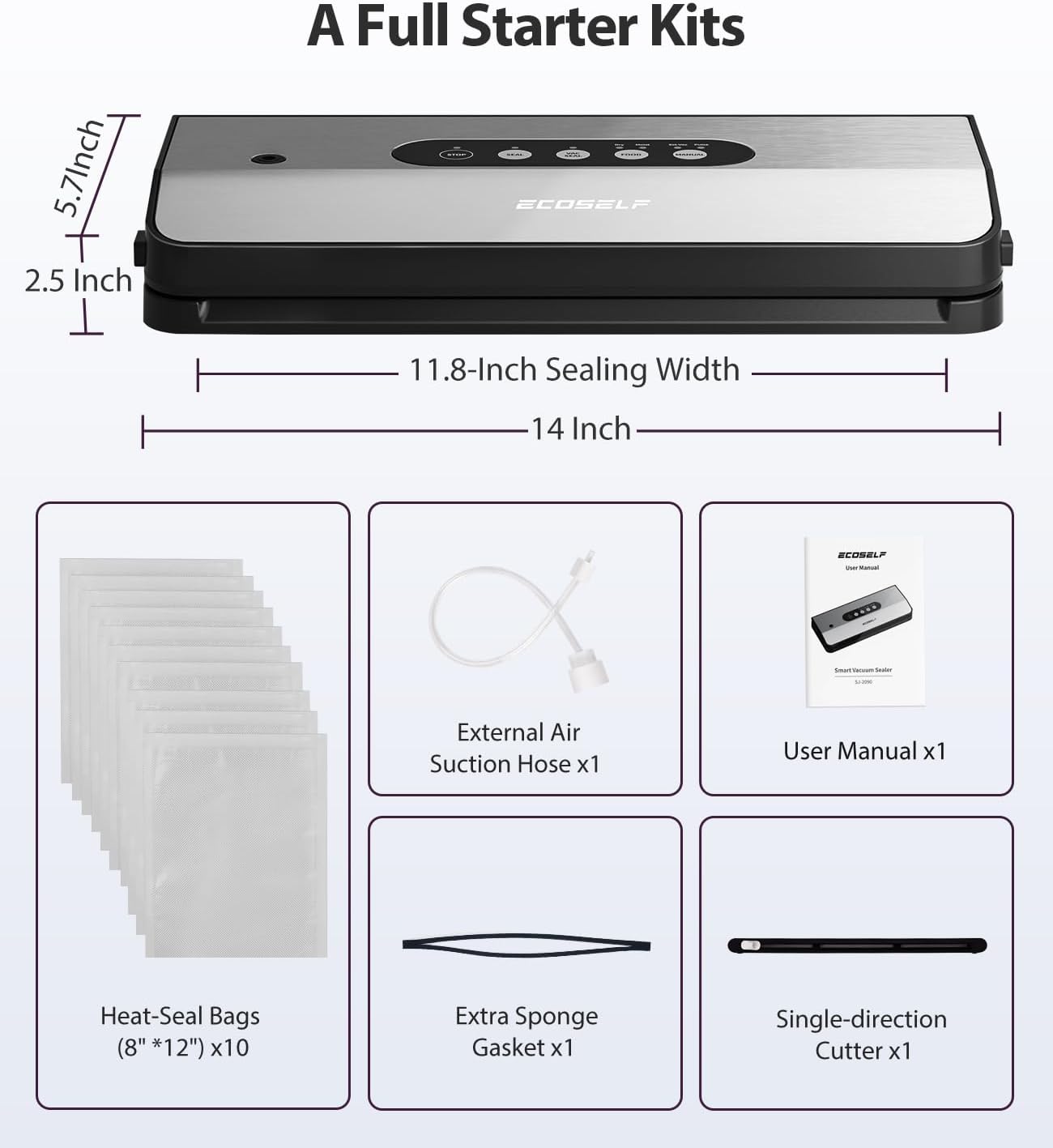 🎁【𝐅𝐫𝐞𝐞 𝐅𝐮𝐥𝐥 𝐒𝐭𝐚𝐫𝐭𝐞𝐫 𝐊𝐢𝐭𝐬 𝐈𝐧𝐜𝐥𝐮𝐝𝐞𝐝】Whether pro or beginner, our comprehensive accessory set has you covered. The package includes: 10 x Heat-Seal Bags (8″ *12″), 1 x Extra Gasket Replacement, 1 x External Air Suction Hose, 1 x Bag Cutter, 1 x User Manual.