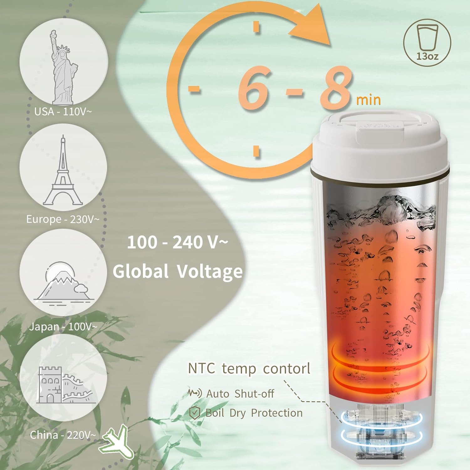 【Global Compatibility & Portability】With dual voltage design and a velvet bag for easy portability, the portable kettle is suitable for use anywhere. Whether you’re a coffee or tea lover, enjoy your favorite hot beverage on-the-go with this portable electric kettle, perfect for travel adventures.