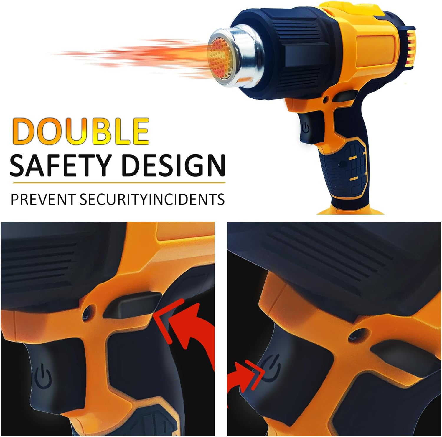 Cordless Heat Gun for Dewalt 20v Battery, 1022℉ Fast Heating Soldering Hot Air Gun for Shrink Tubing, Heat Gun For Crafts, Shrink Wrap, Electronics, Resin,Wire Connectors(Without Batteries)