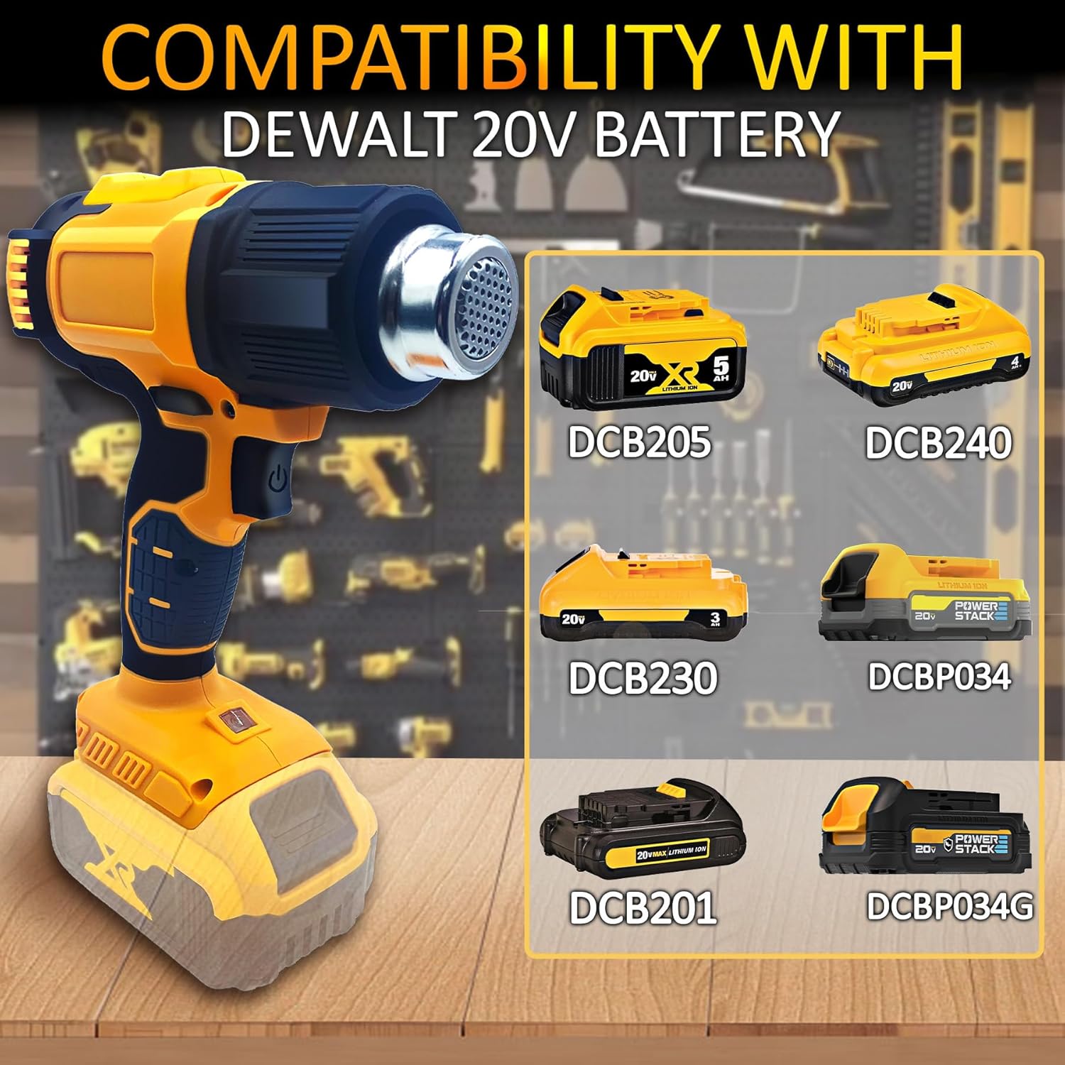 [Perfect Compatibility with DeWALT Battery]: Designed for use with DeWALT 20V max battery, this cordless heat gun is ideal for situations when your DeWALT tool is unavailable but the battery is still functional. Tool only, battery not included.