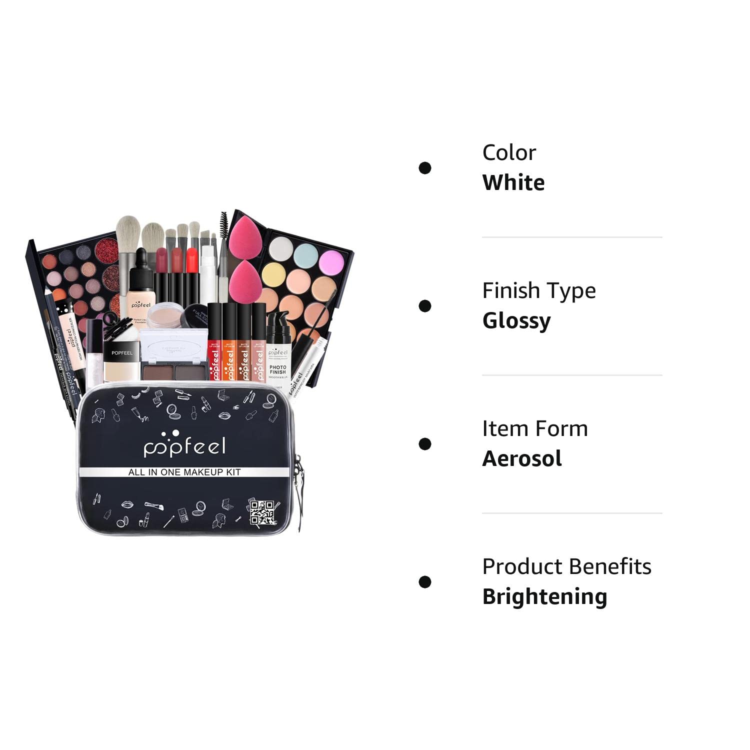 【All In One Makeup Set】A perfect starter makeup kit that includes eyeshadow palette, loose powder, lipgloss, lipstick, concealer cream, makeup brush, concealer palette, eyebrow powder, high-gloss lying silkworm brightening powder, HD concealer, eyeliner, lip balm, mascara, foundation, powder puff, travel bag. All women’s essentials in one elegant box and a great gift for any occasion.