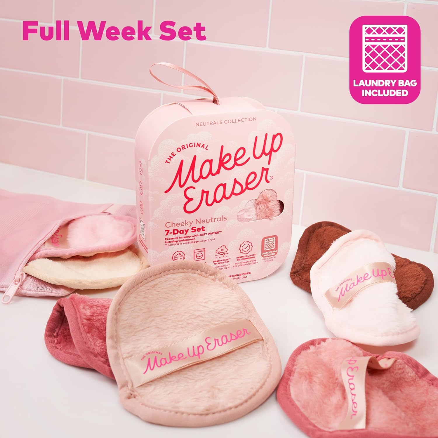 Makeup Eraser The Original, 7-Day Set, Erase All Makeup with Just Water, Including Waterproof Mascara, Eyeliner, Foundation, Lipstick, Sunscreen, and More! Neutrals, 7ct.