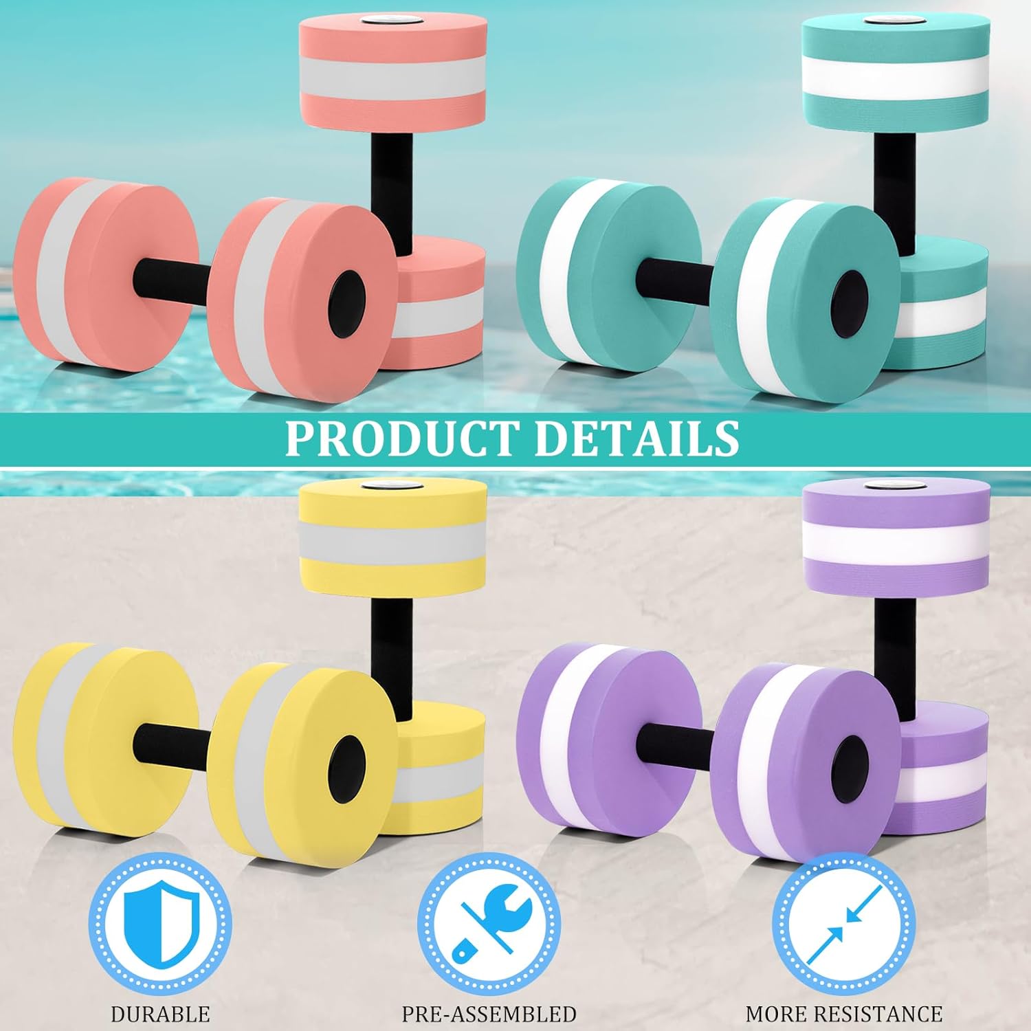 Effective Resistance and Buoyancy: designed specifically for water aerobics, these pool weights offer resistance during your workouts; They are buoyant, providing the necessary support while adding resistance to your movements; With these dumbbells, you can engage different muscle groups, enhancing your overall fitness and achieving a comprehensive workout