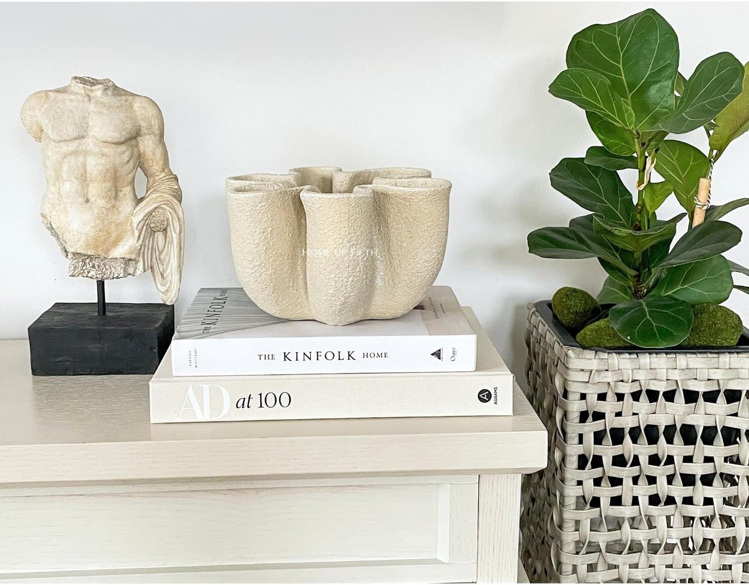 Fluted Scallop Decorative Bowl / Vase sculptural object that can be used on a bookshelf coffee table console table or a catchall bowl – It can also be used interchangeably between a decorative bowl or a flower vase for a short yet impactful arrangement
