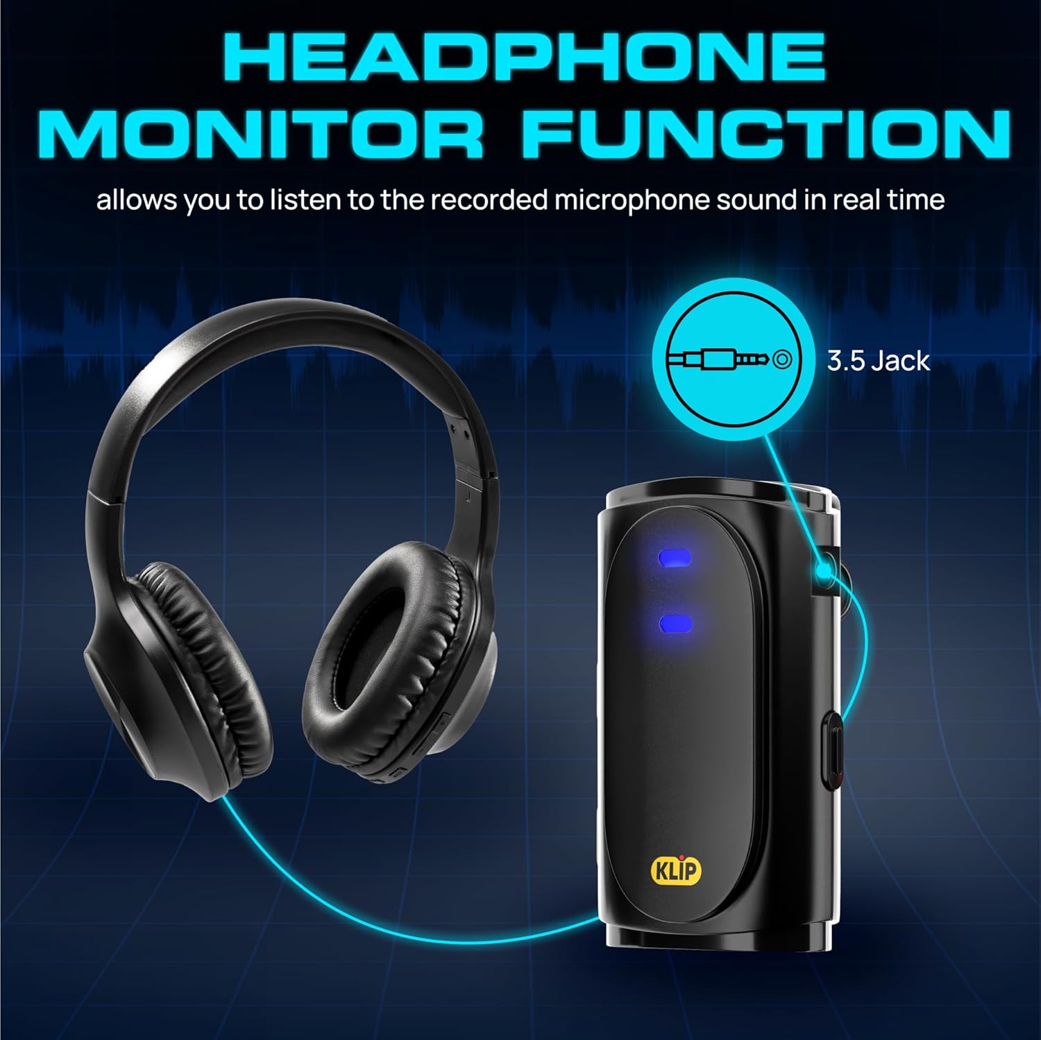 🎧 The π‡π„π€πƒππ‡πŽππ„ πŒπŽππˆπ“πŽπ‘ π…π”ππ‚π“πˆπŽπ allows you to listen to the recorded sound from the wireless mics in real-time. Now, you can accurately assess the recording quality before completion and make necessary adjustments immediately. No more need for repeated recording takes. Simply connect headphones with a 3.5mm jack to the RX receiver’s socket for this purpose.