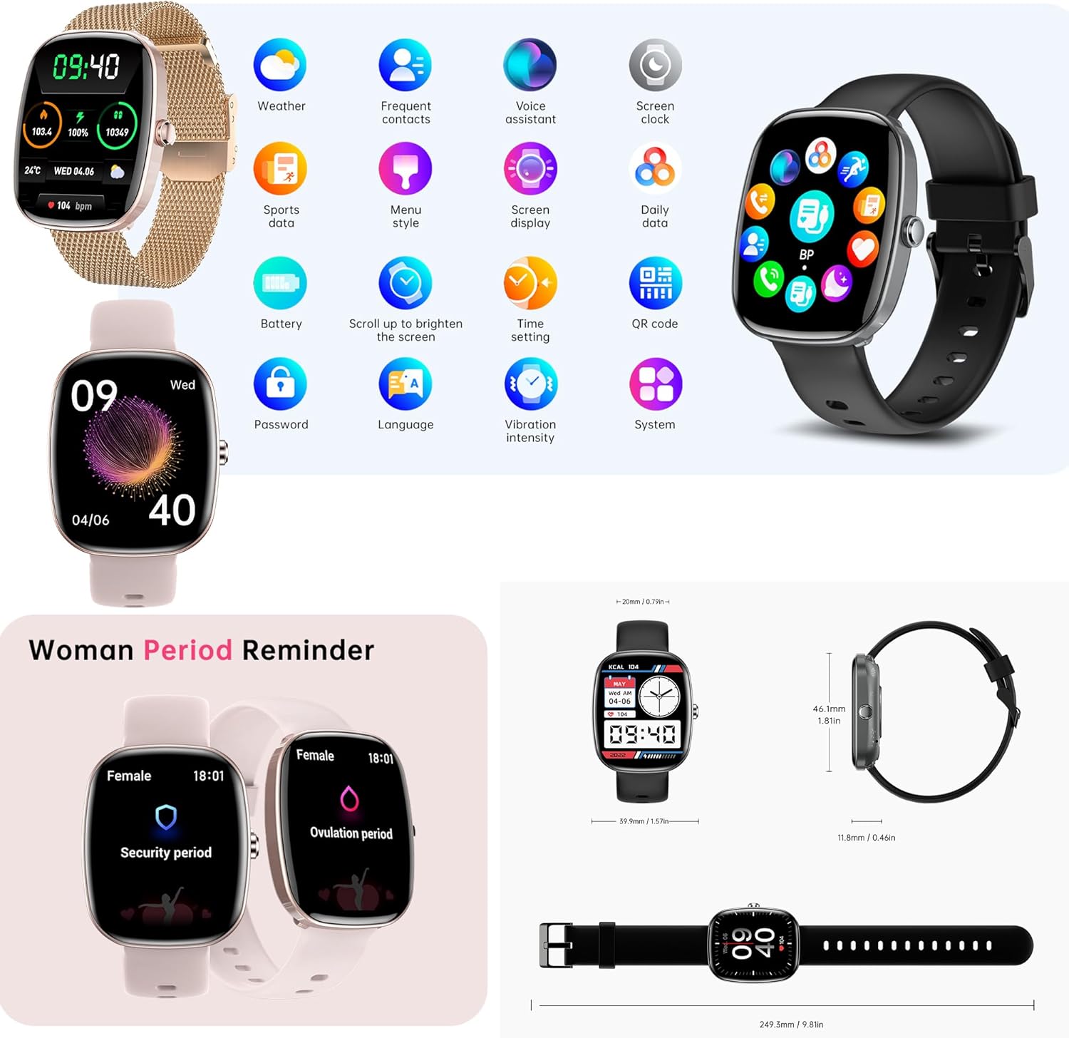 📲【AI Voice Assistant & Make Calls】With Bluetooth connection to your phone, it can support incoming calls/text alerts/APP message notifications (WhatsApp/Facebook/Instagram etc.), you will never miss your important messages. There are more than 150 watch face options for you to choose from in the App. You could also customize the smart watch face with photos from your own album.