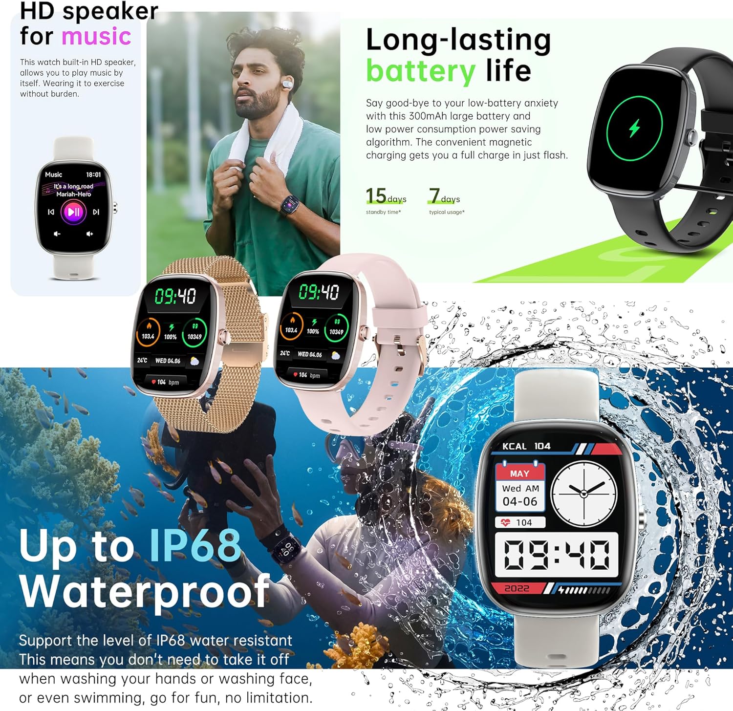 Through Bluetooth 5.0, this smart watch can receive any information, you will never missing any messages.
