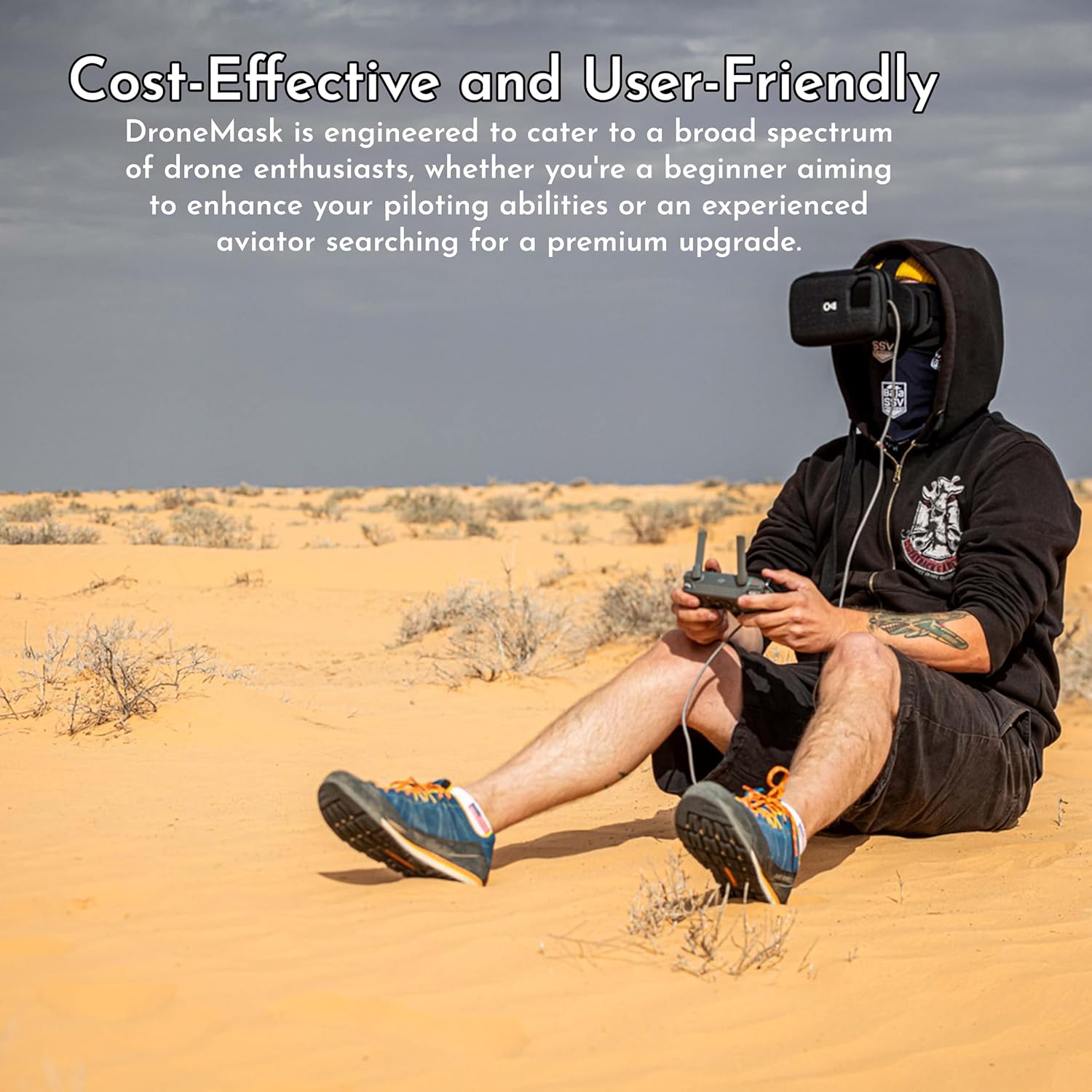 【Distraction-Free Flying with DroneMask 1】: DroneMask 1 HD FPV Goggles are designed to provide a distraction-free flight, effectively blocking out the sun’s glare, preserving your concentration and control over your dron and enhancing your enjoyment.