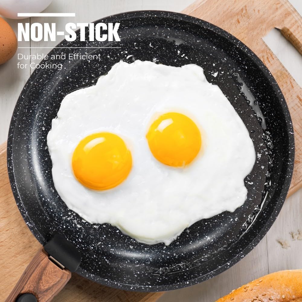 ☆ 𝗘𝗮𝘀𝘆 𝘁𝗼 𝗖𝗹𝗲𝗮𝗻: The nonstick coating makes our pots and pans set non stick a breeze to clean. Simply wipe it off with water or a paper towel, saving you time and effort in the kitchen.