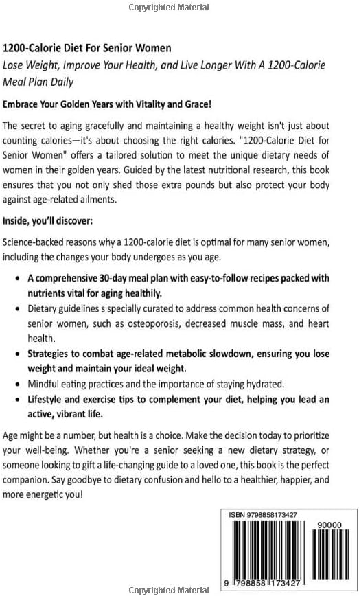 Be the first to review “1200-Calorie Diet For Senior Women: Lose Weight, Improve Your Health, And Live Longer With a 1200-Calorie Meal Plan Daily (Healthy Weight Loss Solutions)”