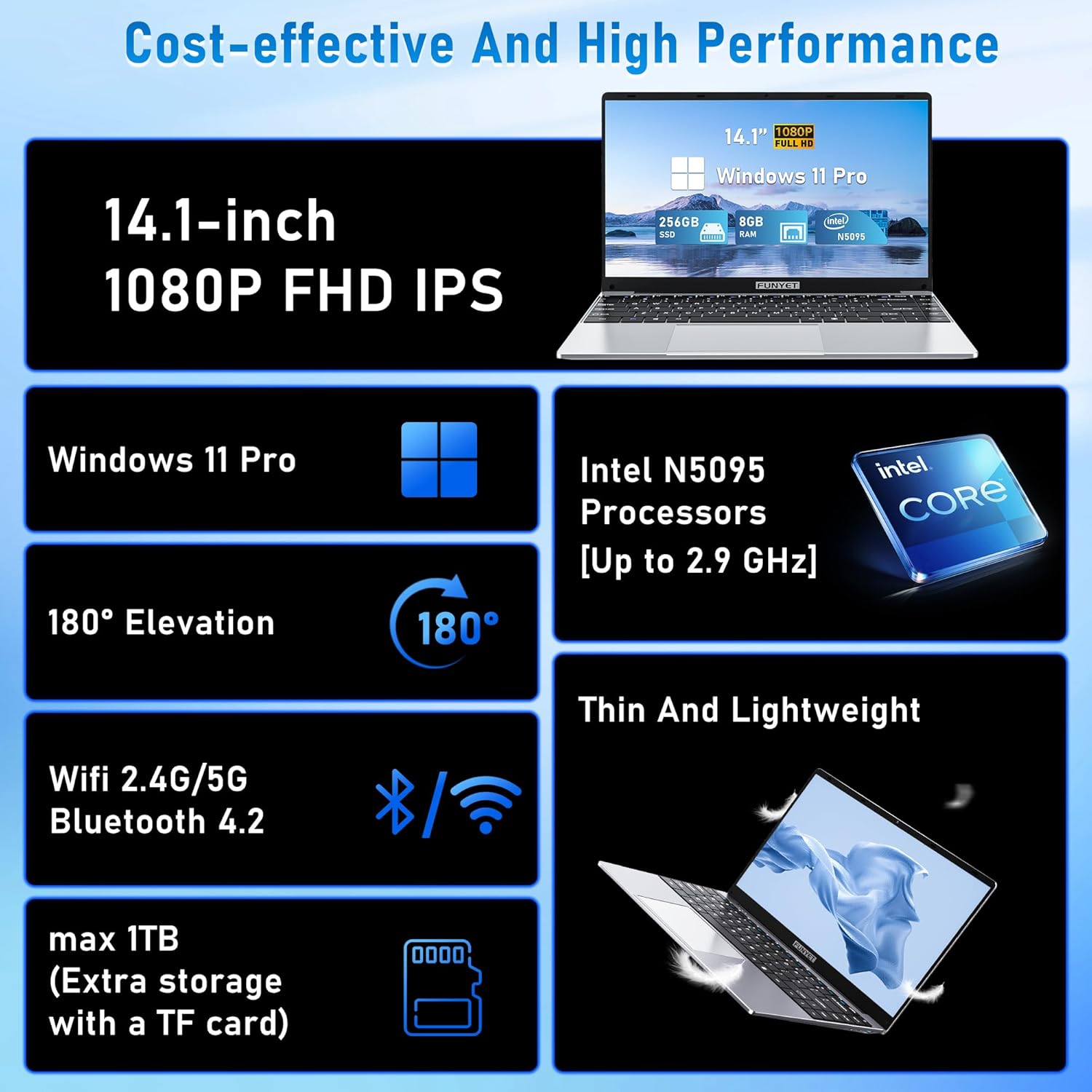 Effortless Multitasking: Boasting 8GB RAM and a 512GB high-speed SSD, this laptop effortlessly manages multiple programs simultaneously. Need more space? Expand your storage up to 1TB with a TF card, catering to all your data needs without compromise.