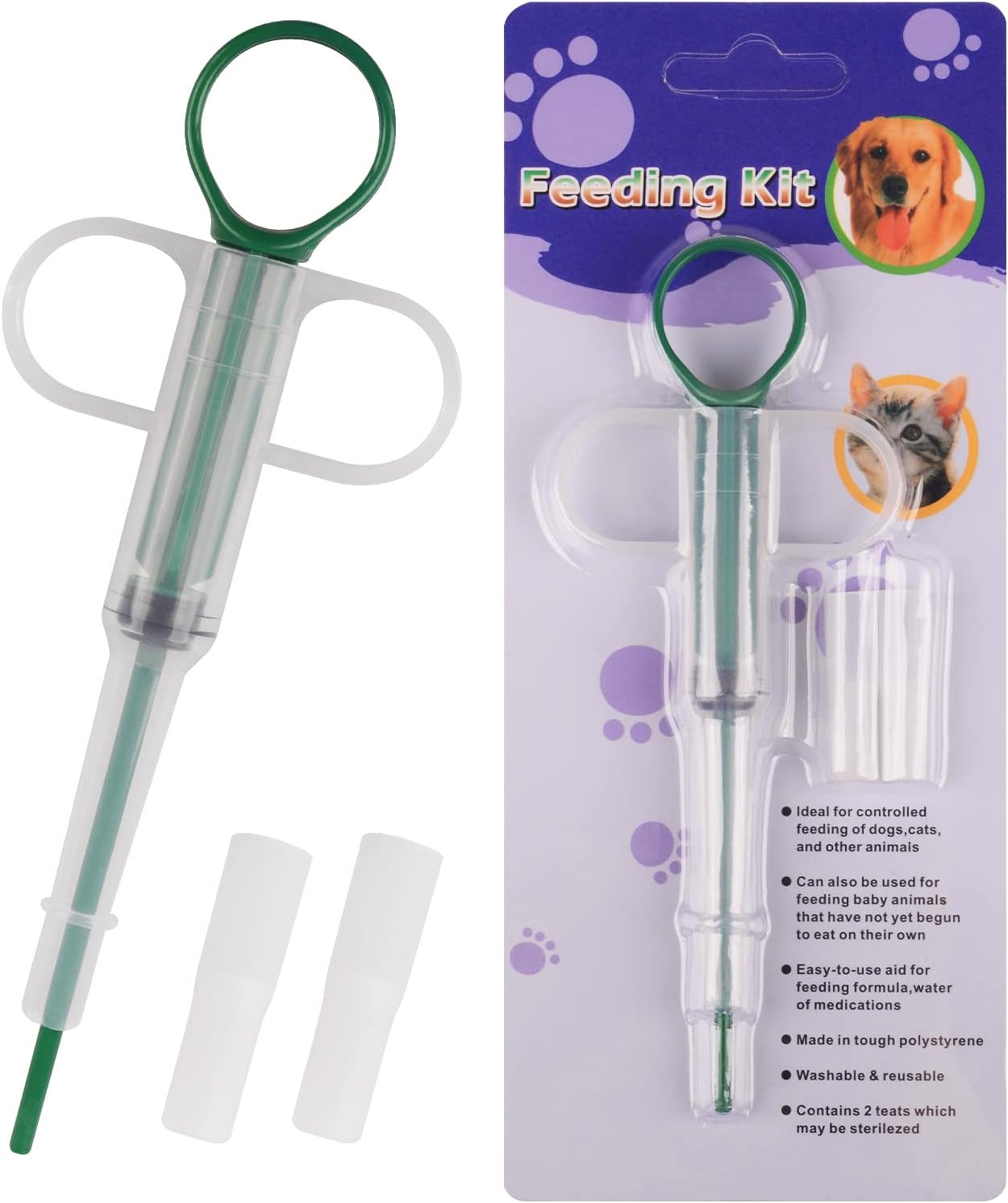 Pet pill feeding syringes for oral tablets, liquid medicine, capsules of various shapes and sizes.