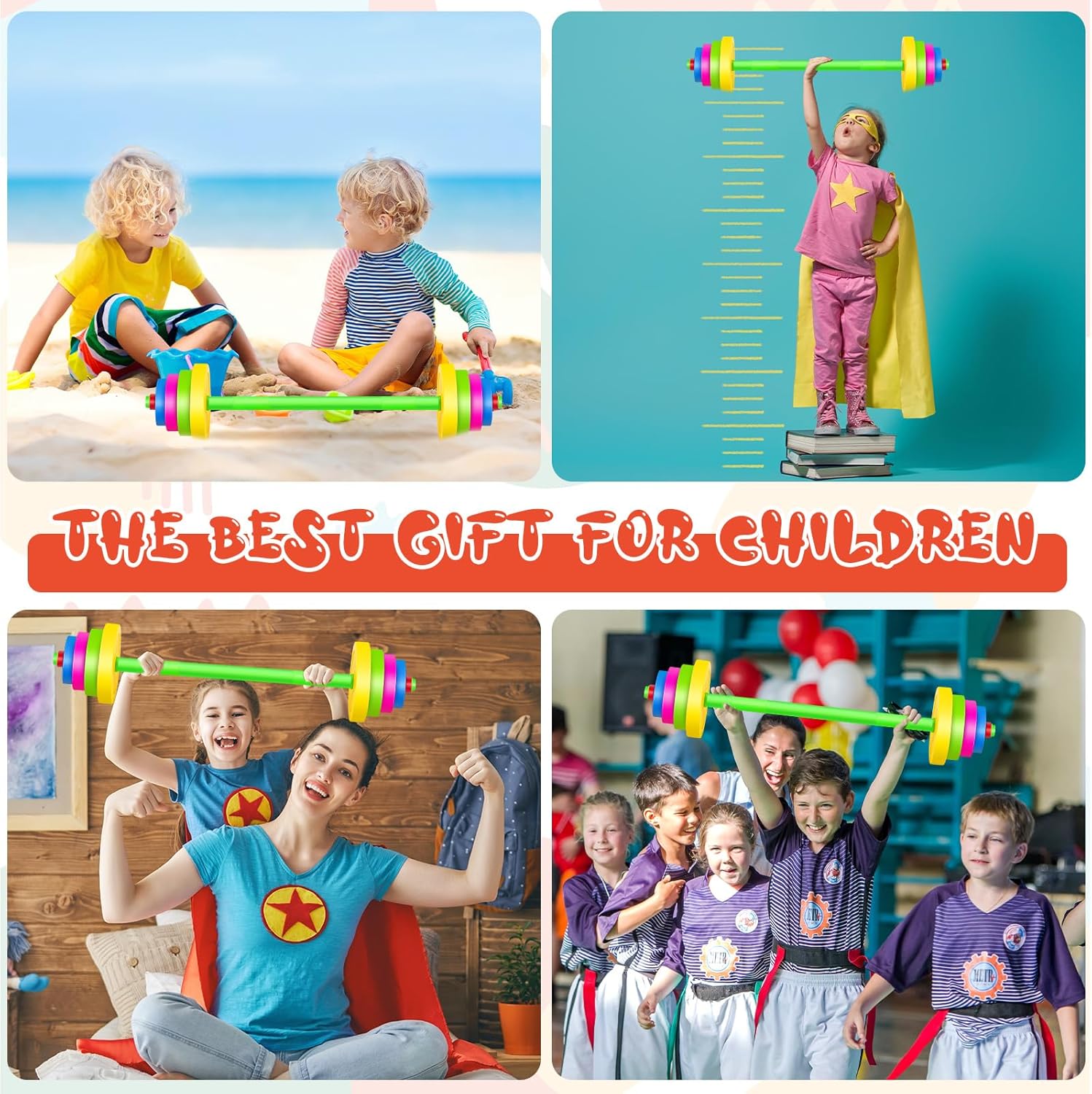 2 Set Kids Barbell Weight Set Workout Equipment Colorful Workout Weights Kids Plastic Barbell for Children Toddler Beginner Exercise Gym Fitness Adjustable Weight Lifting Powerlifting