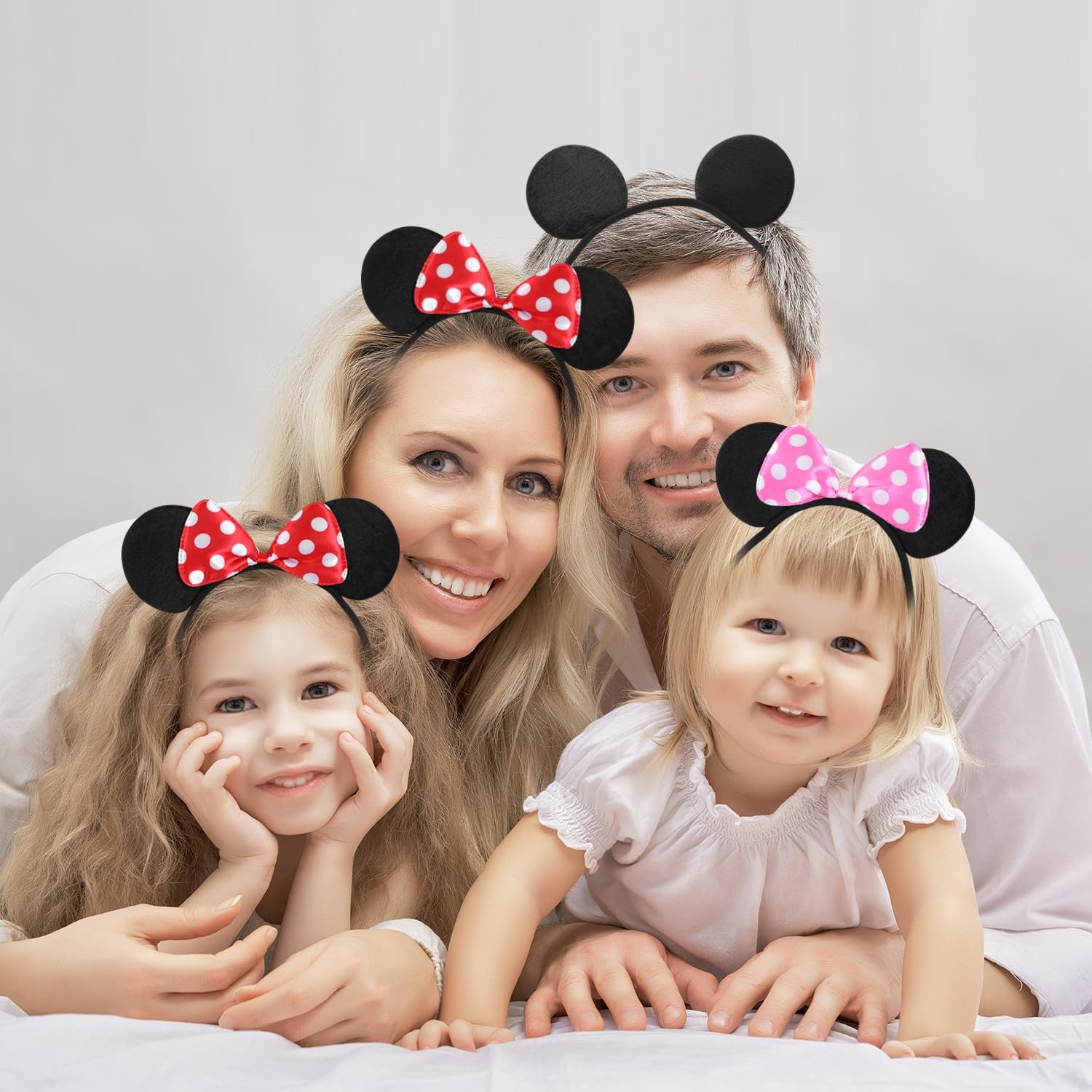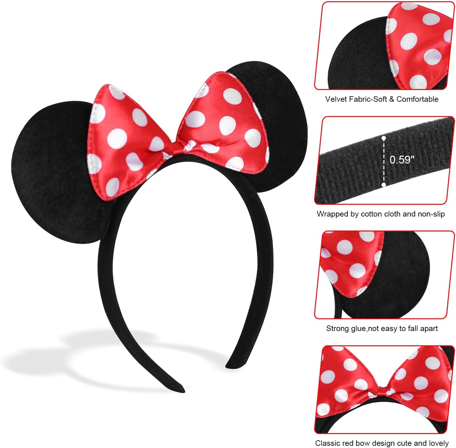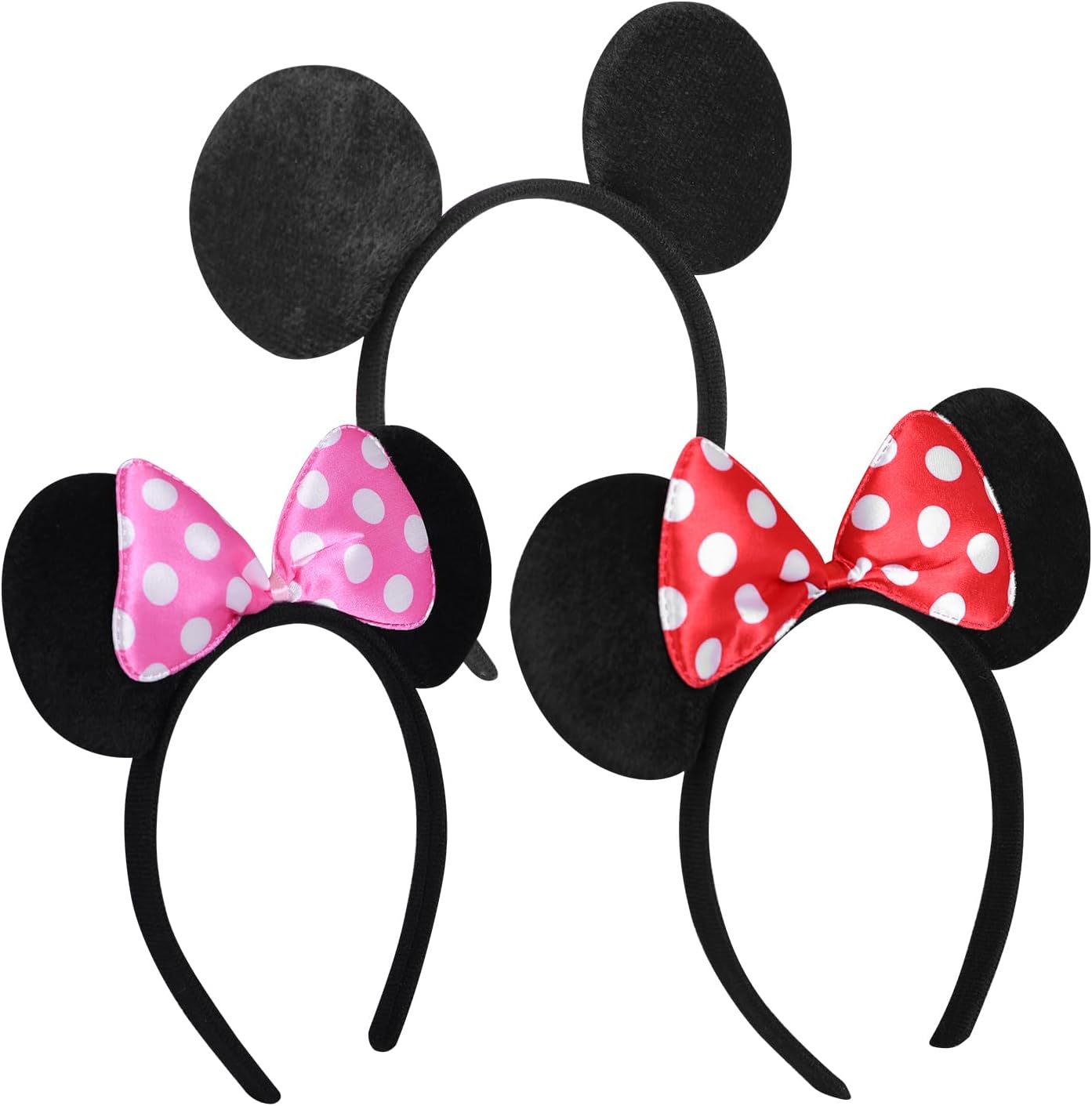 COMFORTABLE: Made of soft, felt-like fabric while the mouse ears have a cute red dotted bow.Perfect manufacturing technique keeps the surface of headband clean and neat.