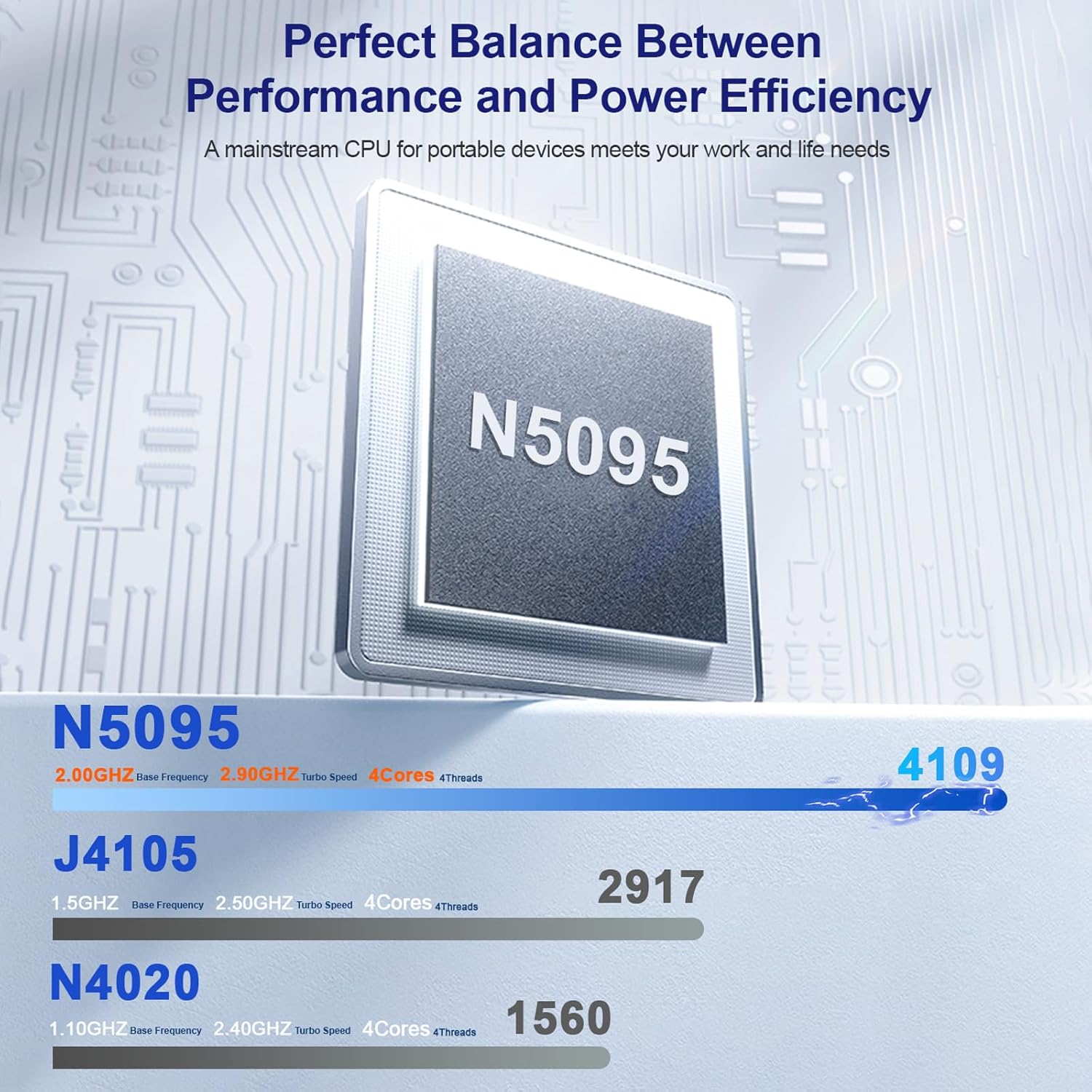 [Easily Complete Your Everyday Tasks] The power-efficient Intel N5095 processor drives applications with two Performance cores that have a Max Turbo frequency of 2.9 GHz while the two Efficient cores handle background tasks. Complementing the CPU, 32GB of DDR4 RAM enables minimal load times for applications, and 512GB SSD provides ample space for a file library and creative assets.