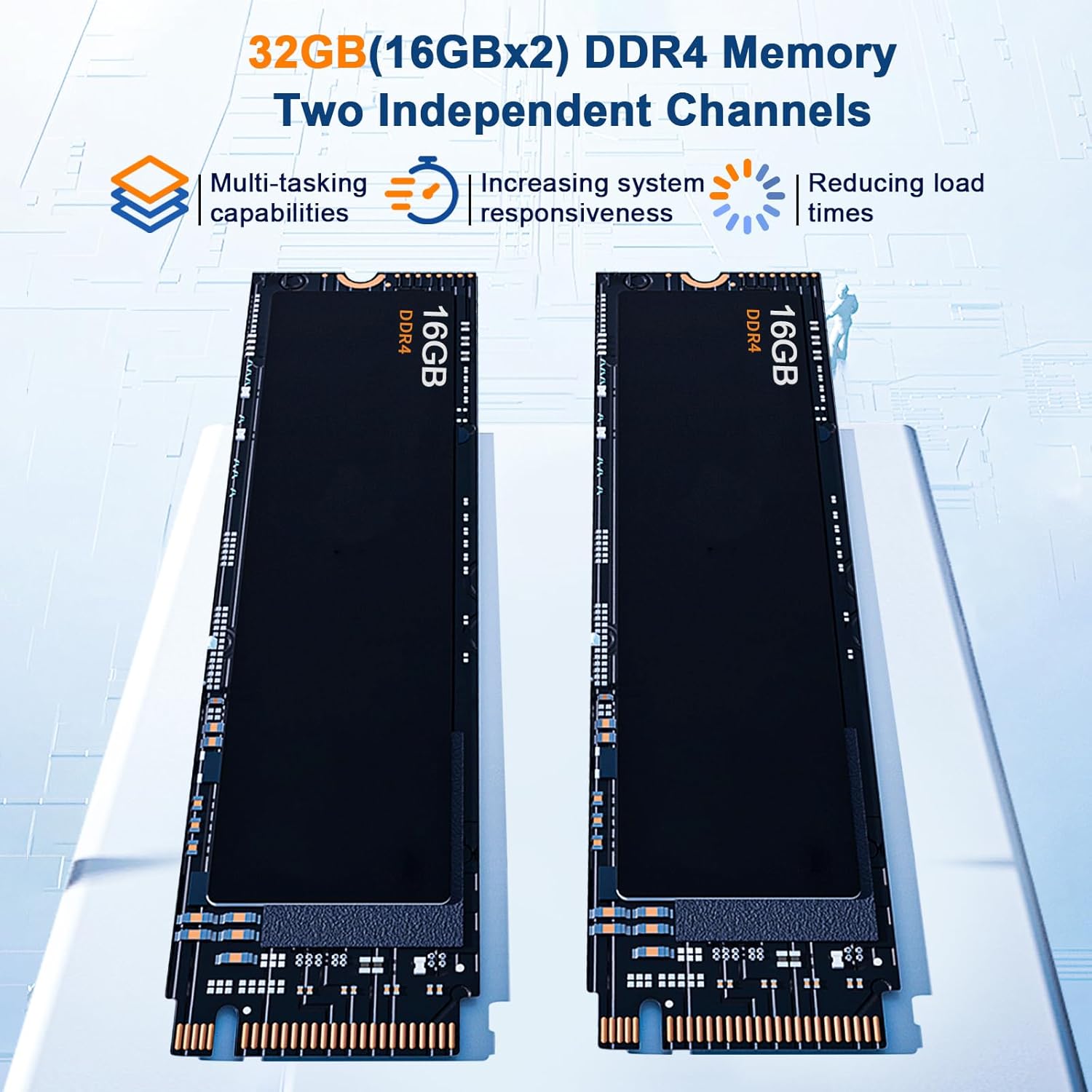 [Dual Channels 32GB Memory] This Windows laptop is equipped with dual-channel 32GB memory, which allows the system to access two memory modules simultaneously, effectively doubling the memory bandwidth, compared to single-channel configurations. It enables faster data transfer between the memory and the CPU, improving system performance, especially in memory-intensive tasks such as gaming, video editing, and multitasking.
