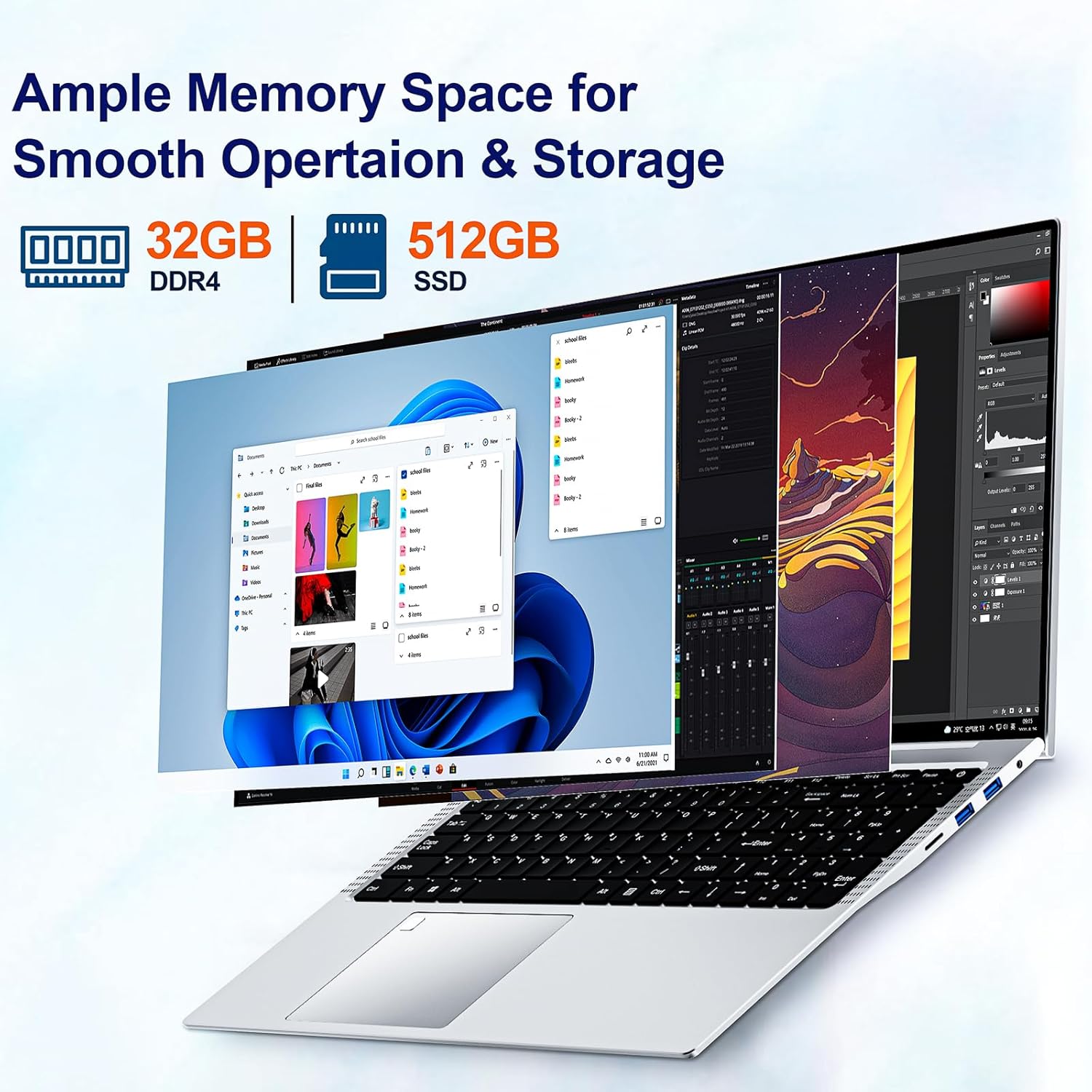 2024 Newest 15.6” Laptop, 32GB Dual Channel RAM, 512GB SSD, Windows 11, Intel Quad-Core Processor(up to 2.9GHz), Laptop Computer with IPS FHD 1080P Display, 5G/2.4Ghz WiFi, USB 3.0, BT 4.2