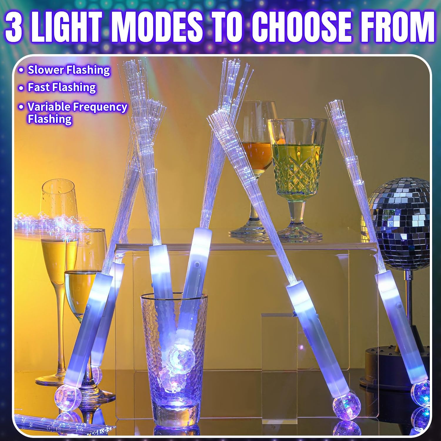Versatile Light Modes: each fiber optic light has 3 light modes, including steady light mode, fast flashing mode and slower flashing mode; Users can switch between these modes depending on the mood, occasion, or preferred visual effect, rendering the wands suitable for a wide range of contexts and events
