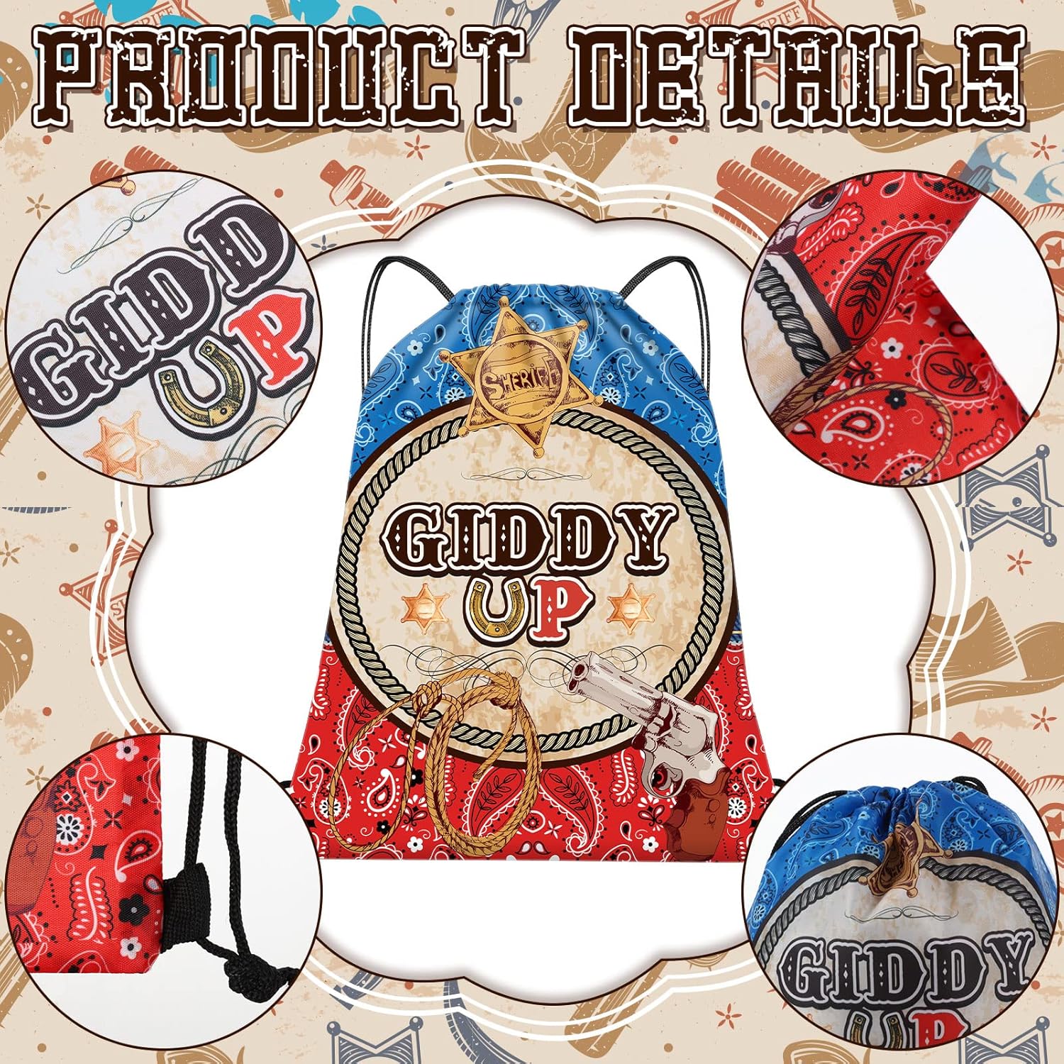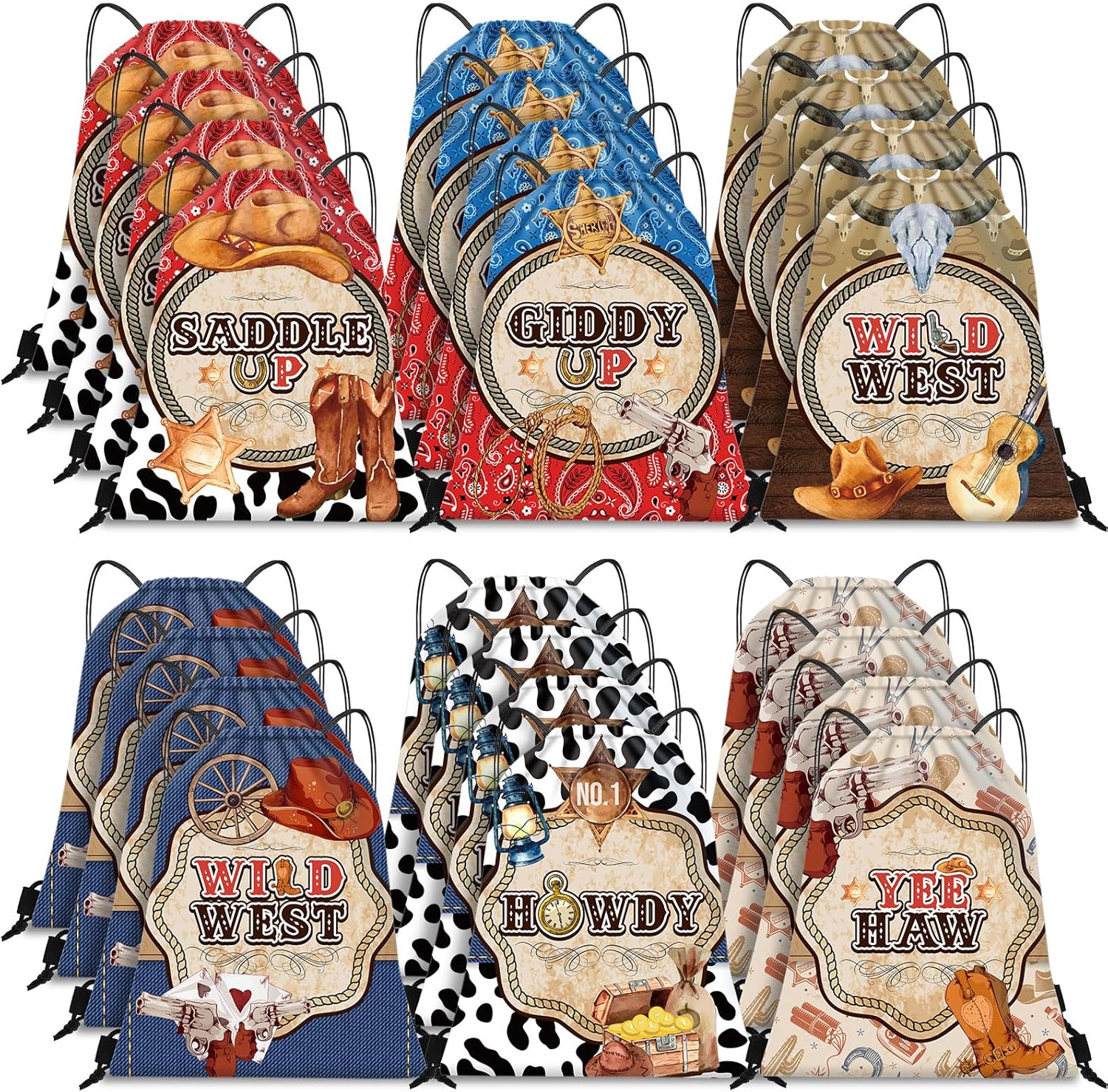 Package Includes: you will get 24 pieces of western cowboy party drawstring backpacks, designed in 6 cool styles, which are enough to meet your daily wearing or sharing needs, as well as served as party decorations