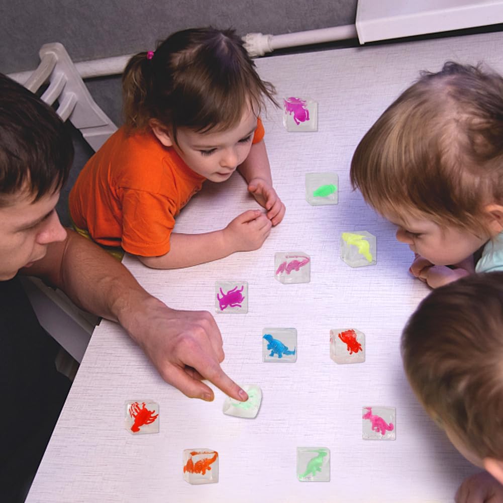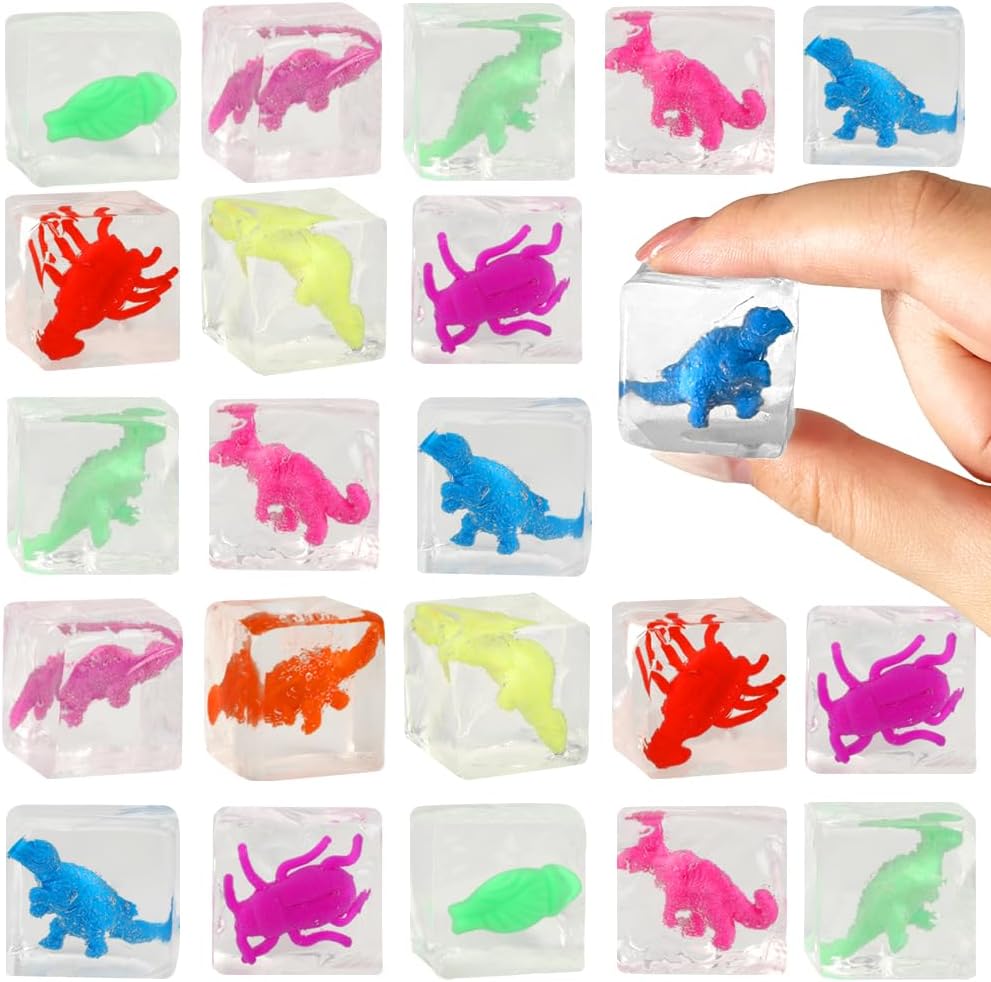 CUTE SQUISHY TOYS SET: Sticky pinch toys include 24 pieces of creative small cube pressure toy with 2 textures of transparent and frosted, realistic design, novelty squishy toys for kids include a variety of dinosaurs, animals and other attractive elements inside, animals and other attractive elements, rich and diverse to meet different preferences! 24pcs are enough to share with friends and family and feel the fun of mochi toy together!