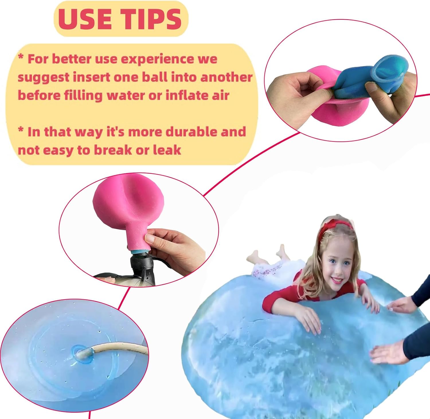 Durable and Flexible Inflatable Bubble Balls: These reusable water toys are made of lightweight, flexible, and durable rubber that is transparent for easy viewing.