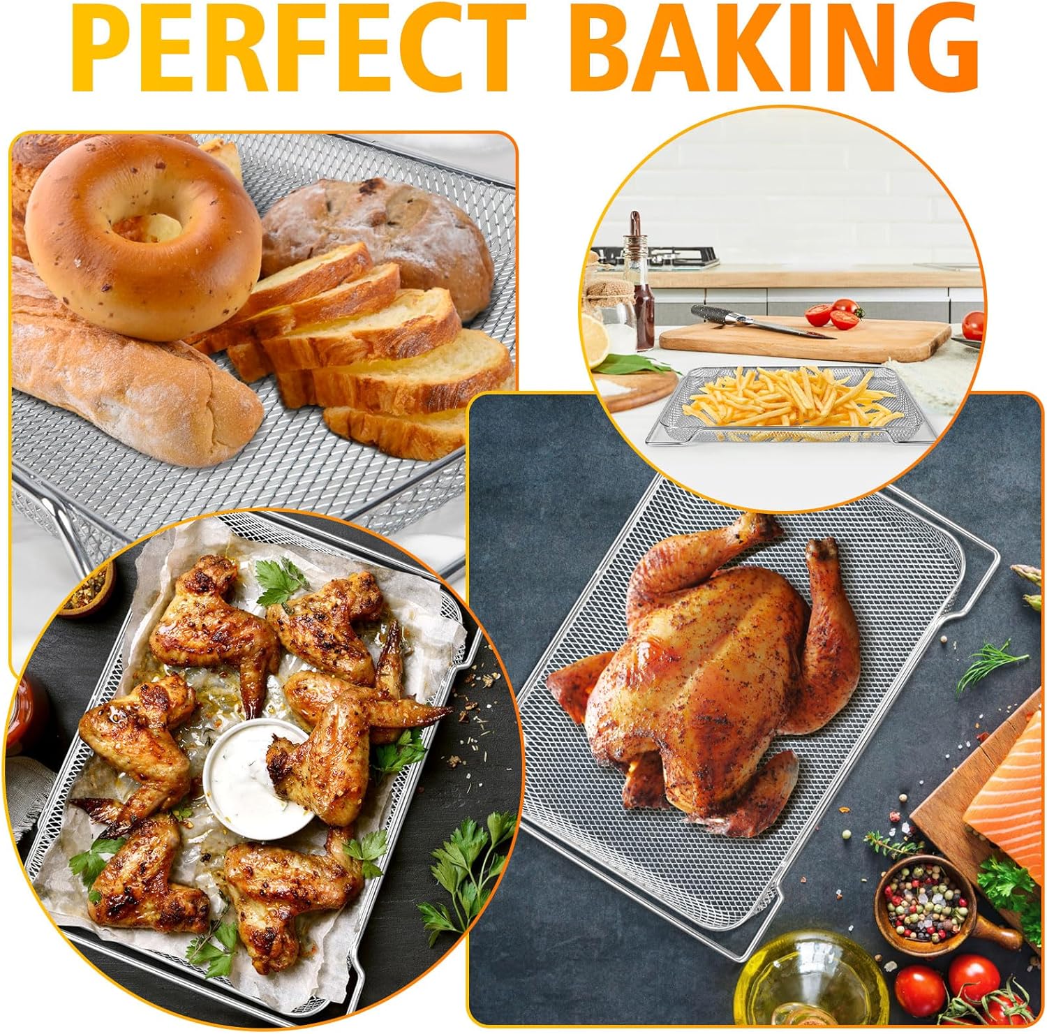 【VERSATILE USES】 This 3 piece set will become your favorite basket for cooking in the oven. Great for cookies, crispy bacon, french fries, pork chops, tater tots, pizza, shrimp, vegetables, fried chicken, and so much more! We provide 24-hour friendly service and one-year warranty commitment, if you have any questions, please contact us in time!