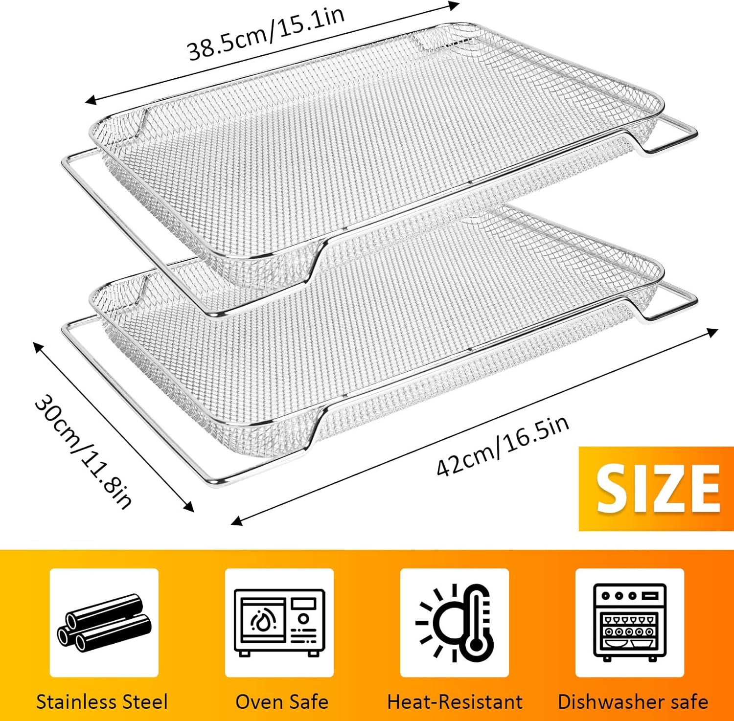 【100% COMPATIBLE】This 3pcs air fry mesh basket set is 16.5x 11.8 x 0.75 inches. Replacement air fry basket Compatible with Breville Smart Oven Air Fryer Pro (Please confirm oven model and size before purchase)