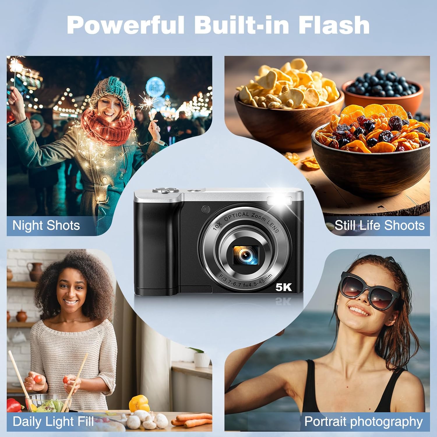 【𝐄𝐚𝐬𝐢𝐥𝐲 𝐓𝐚𝐤𝐞 𝐃𝐞𝐜𝐞𝐧𝐭 𝟱𝗞 𝟱𝟲𝗠𝗣 𝐈𝐦𝐚𝐠𝐞𝐬】This 2024 Newest digital Camera captures super clarity 5K videos and 56MP photos with bigger CMOS sensor and in-body image stabilization(IBIS) that gets it all in the frame. No preparation needed to capture shots, its automatic results surprise you. Plus, Professional 10X Optical zoom easily handles many genres of photography with tons of details, such as landscapes, wildlife, sports, close-ups, portraits, street photography, travel vlog…….