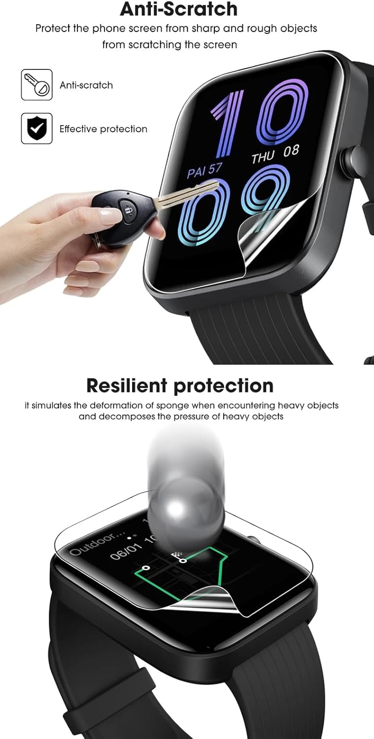 A oleophobic coated screen protector effectively protects your smartwatch from water, oil, or raindrops. High-quality anti-fingerprint screen with high transparency, maintaining the original color and brightness.