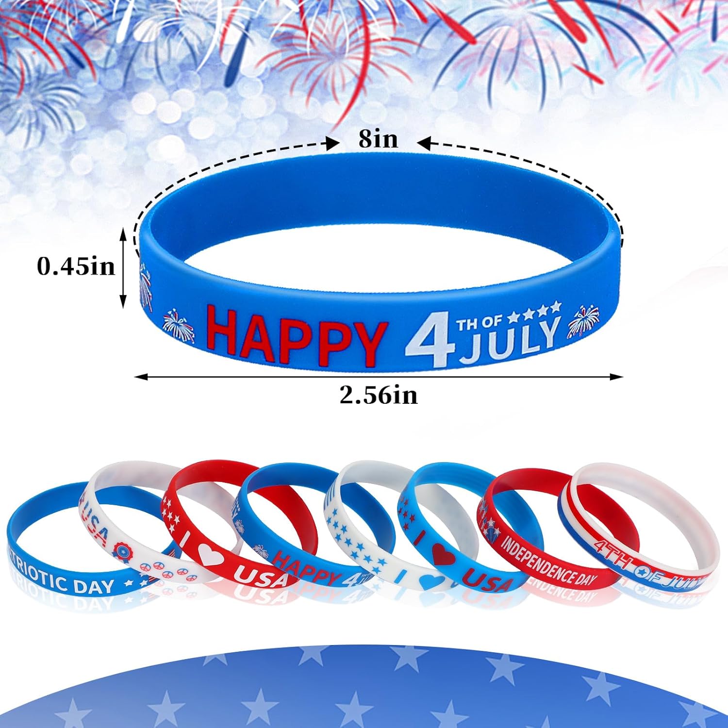 Good Quality Material: The patriotic bracelet is made of soft and comfortable silicone material, which is soft, comfortable and elastic and can fit different sizes of wrists. The 4th of July pins are made of durable tinplate and plastic materials, with clear patterns and bright colors. Each Independence Day gifts bulk has been carefully made to ensure comfort ability and durability, showing professional and exquisite quality