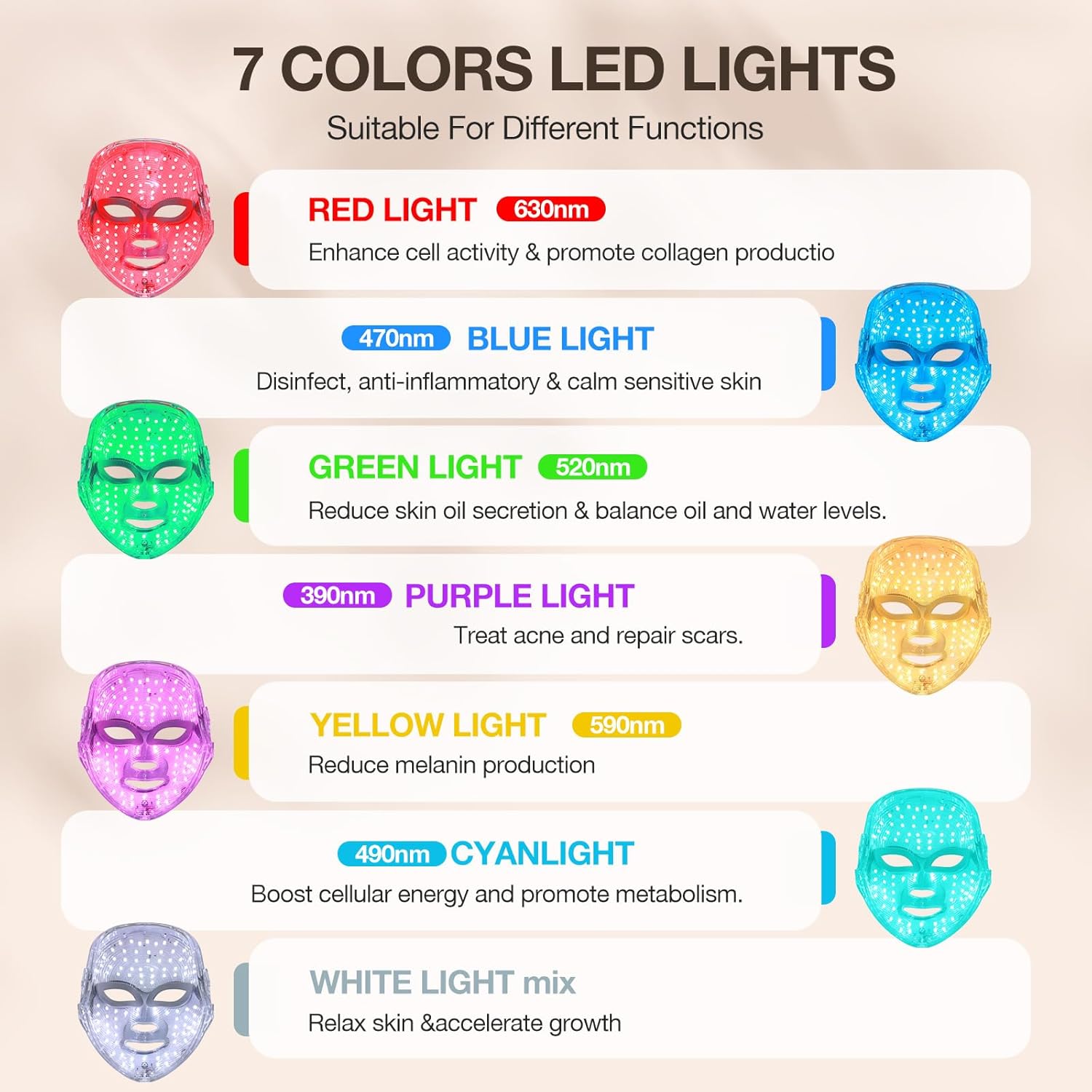 ❤️【7 Colors Skincare】Experience a customized facial with our 7-color technology. Effortlessly customize your skincare routine to meet specific skin needs.