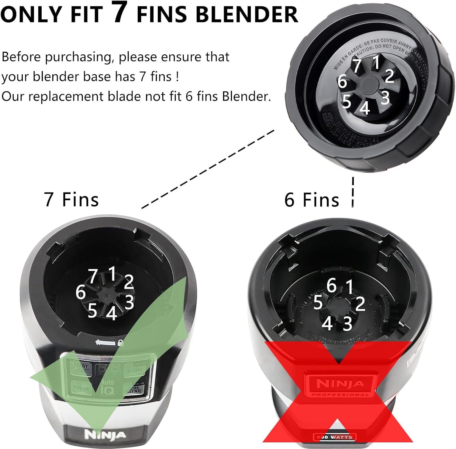 7 Fins Blender Replacement Parts Compatible for Ninja Blender, Blender Blade Fits Ninja BL450_30 BL480_30 BL490_30 BL640 BN400 BN750 BN800 CL405CO CT680 NN100A NN101 NN102 BL2012