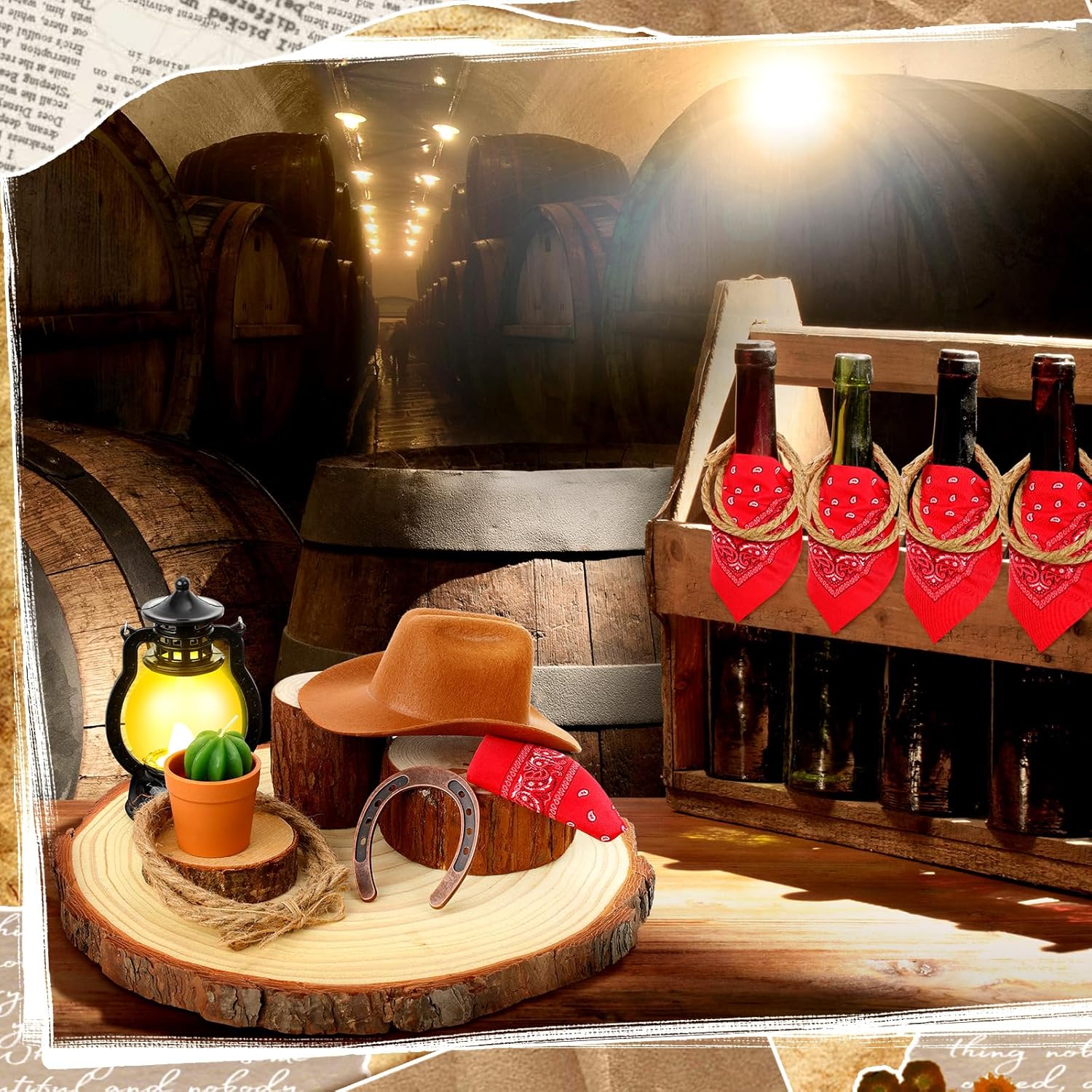 Comprehensive Package for a Suitable Decoration: these cowboy centerpieces for tables provide quite an assortment of items, including 12 mini lanterns (each has 3 batteries), hats, bandanas, hemp ropes, cactus tea candles with pot, and horseshoes; Each product quantity is enough, providing a comprehensive solution to most of your western themed party decoration needs