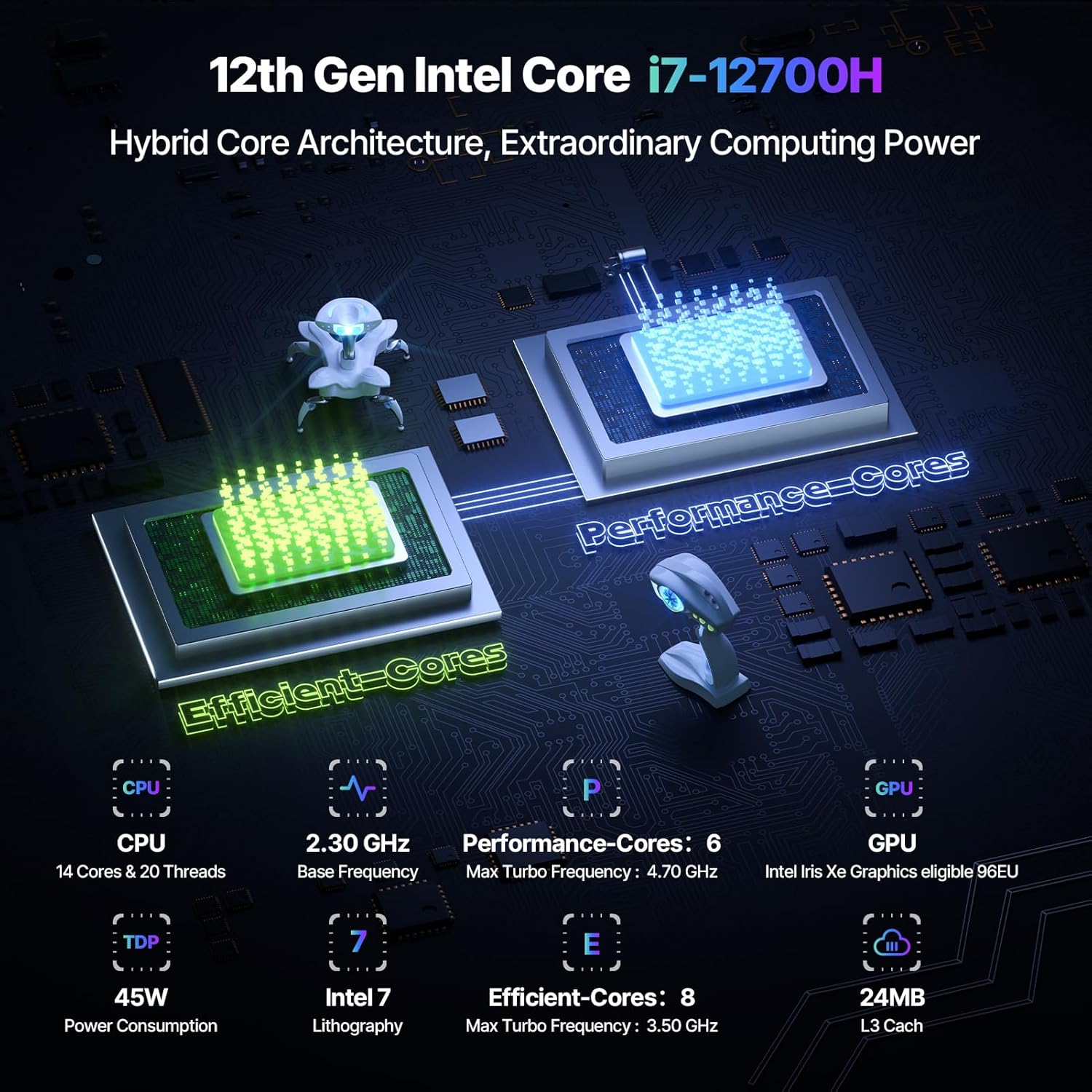 ▶【Do you really know i7-12700H CPU?】 Acemagic gaming pc Tank03 is powered by newest 12th generation Intel Core i7 processor. Compared with other Intel cpu i9 11900H, i7 11800H, this mini pc intel i7-12700H features higher 14 cores, core count is effectively doubled to 20 threads, up to L3 24MB cache, which performans better overall 20% and represents higher single-core performance, higher energy efficiency, and lower latency. The base operating frequency is 2.3GHz,turbo boost frequency up to 4.7GHz, TDP up to 45W. Acemagic game pc is definitely the first choice for professional gamers and 3D renderers.