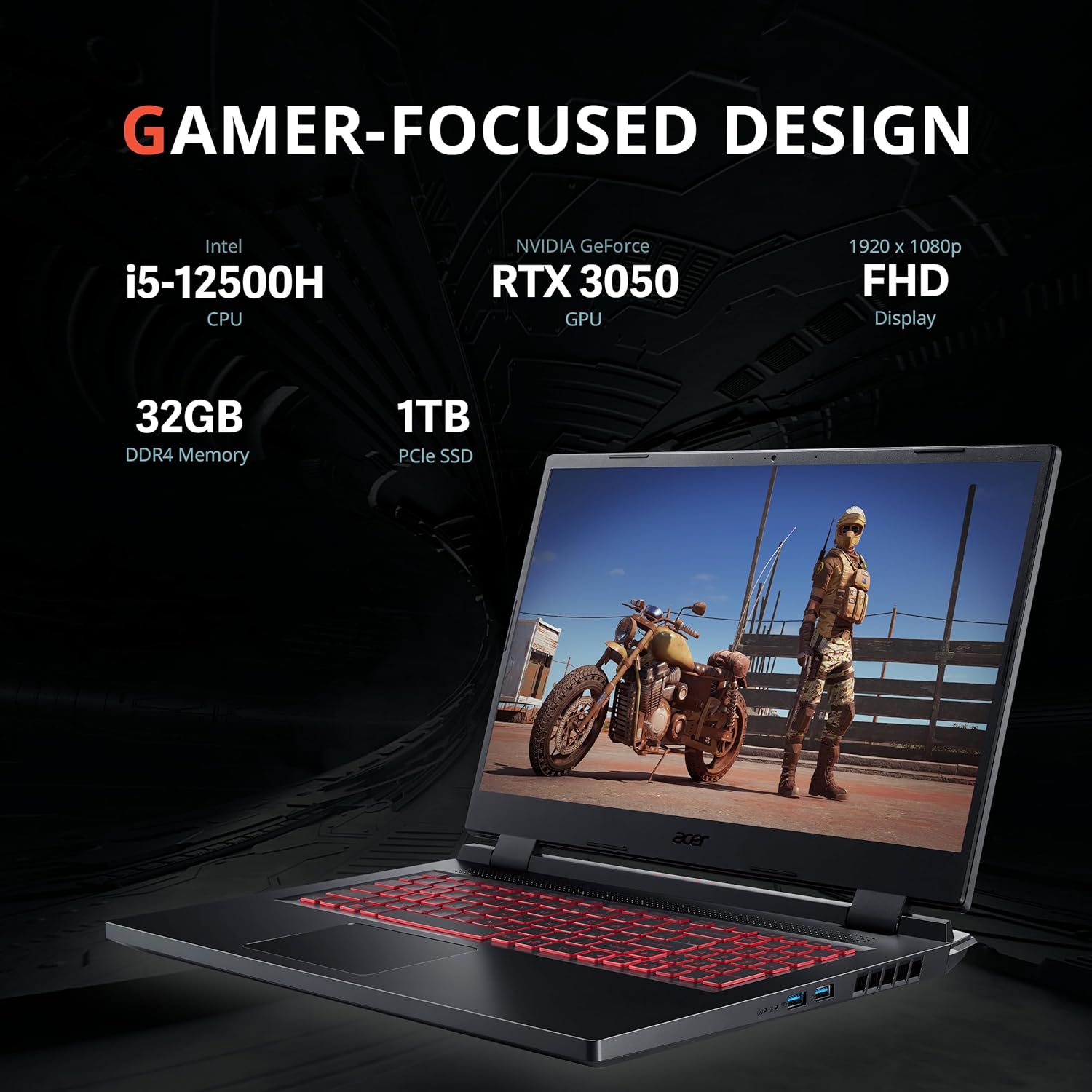 acer 2022 Nitro 5 17.3″ FHD 144Hz FHD IPS Gaming Laptop, Intel Core i5-12500H Processor, 32GB RAM, 1TB PCIe SSD, Backlit Keyboard, NVIDIA GeForce RTX 3050 Graphics, Windows 11, Black, 32GB USB Card