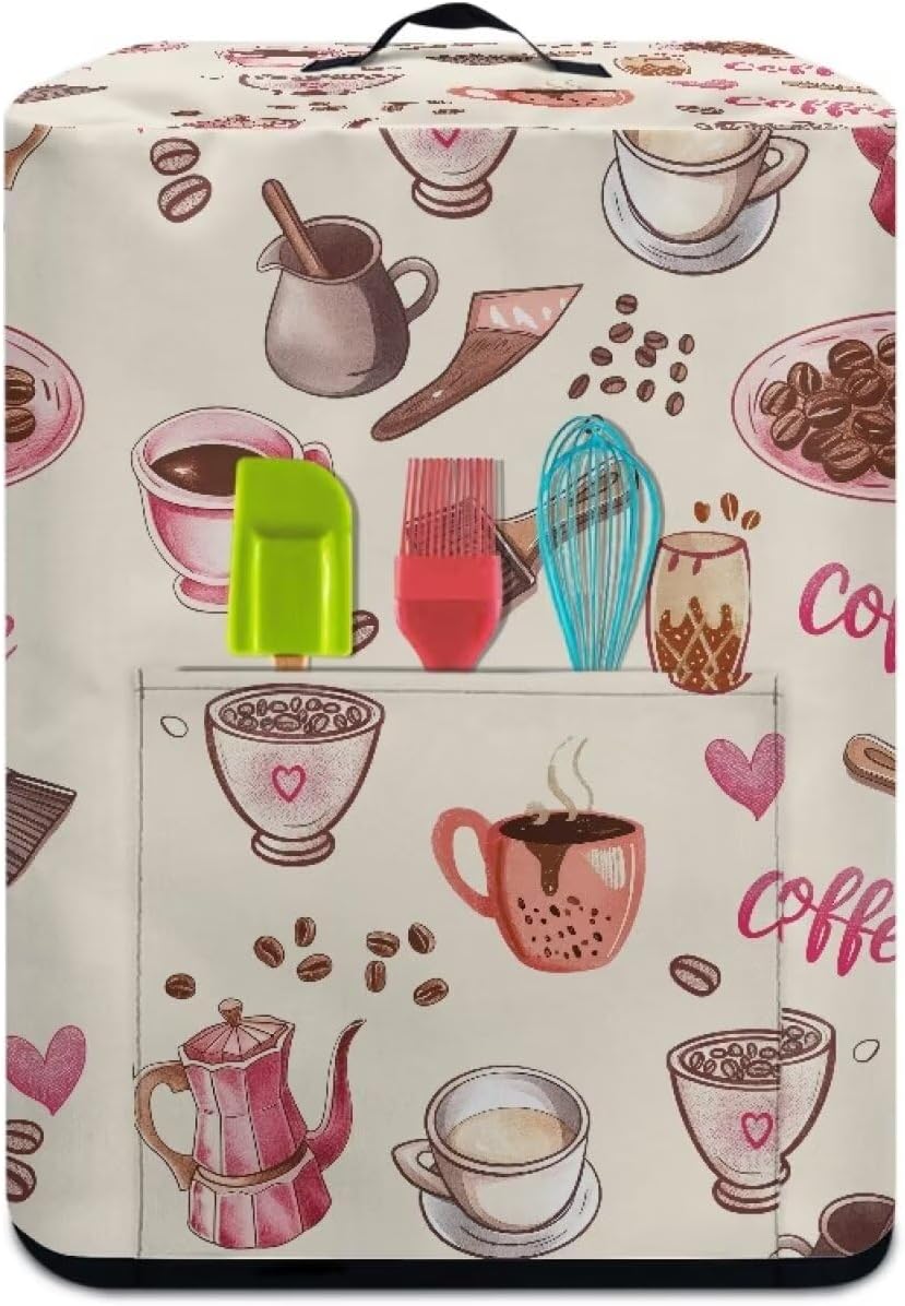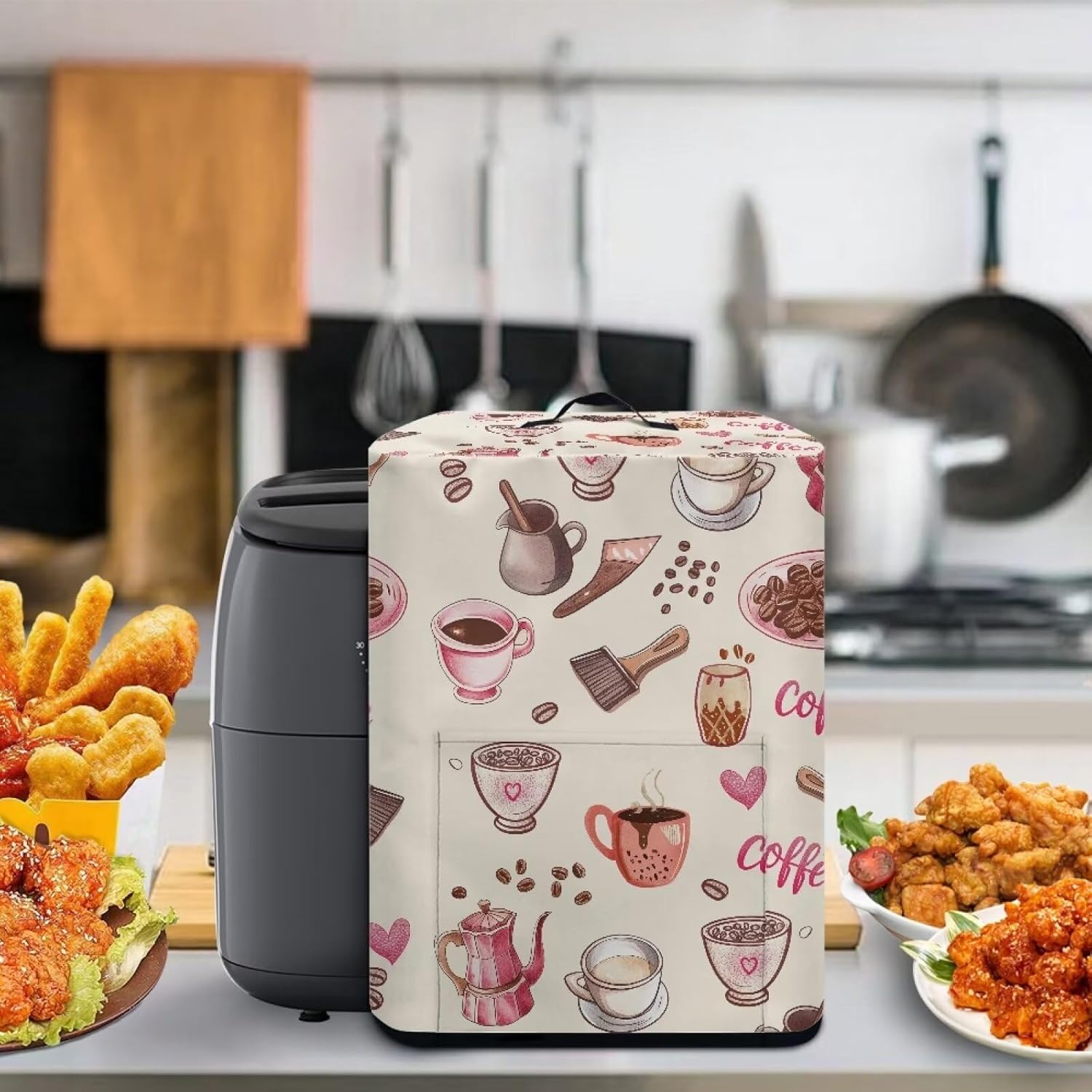 Air Fryer Cover with Pocket and Top Handle, Stain Resistant Washable Kitchen Appliance Protective Cover Electric Appliance Cover Home Decoration, Coffee Pink Beige