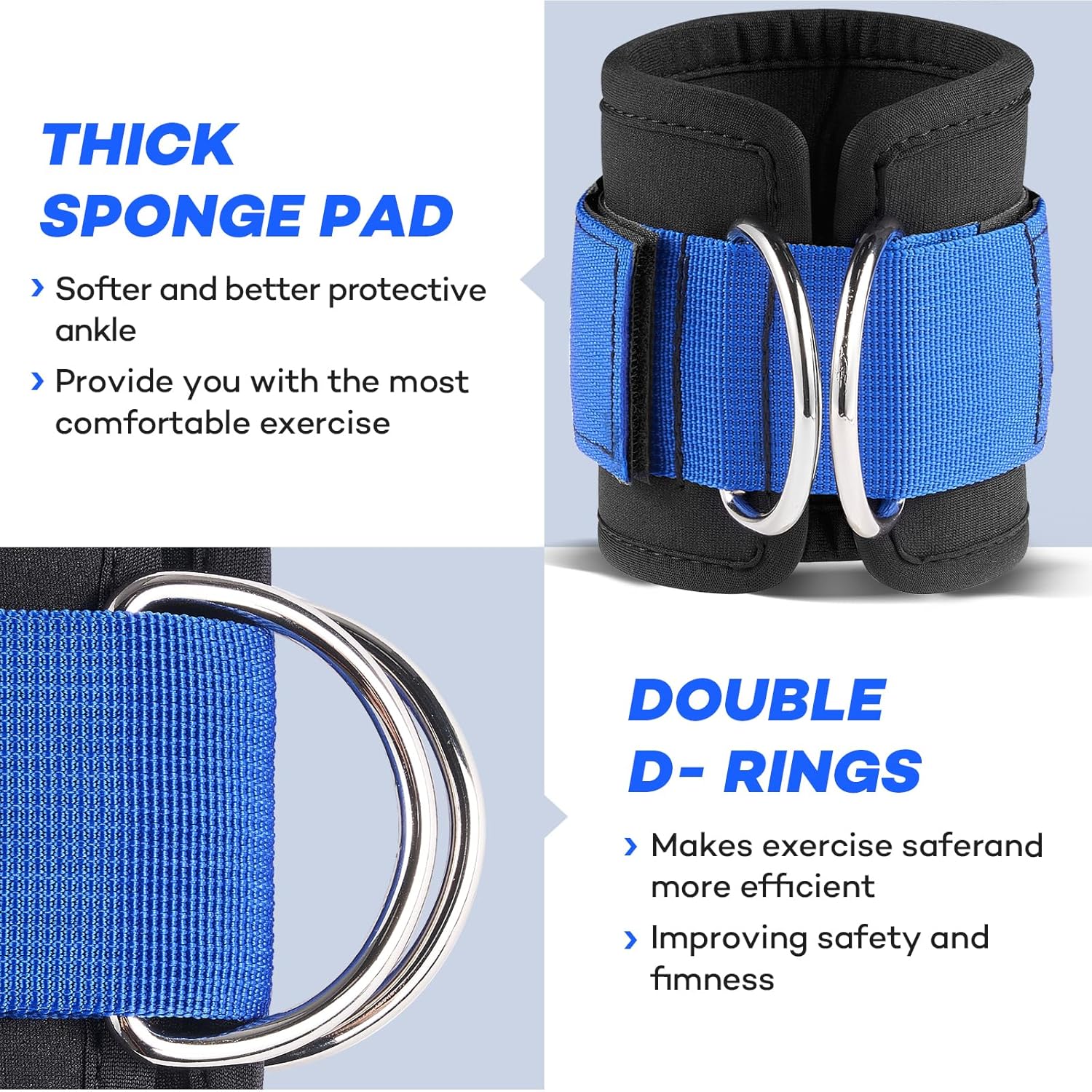 Ultimate Comfort and Security: Our ankle bands feature premium foam padding, offering the market’s most comfortable and secure fit throughout your exercise routine. With dual D-ring closures, they provide stability for worry-free leg and hip training, allowing you to focus on your workout without slippage concerns.