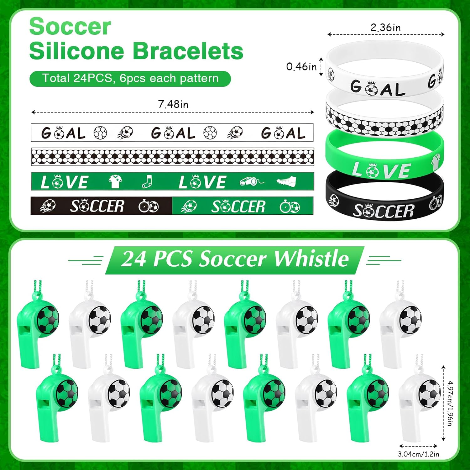 Aoriher 194 Pcs Soccer Basketball Football Baseball Party Favors Set Sport Silicone Bracelet Sport Car Keychain Whistle for Girls Boys Birthday Gifts Sport Themed Party Supplies(Soccer)