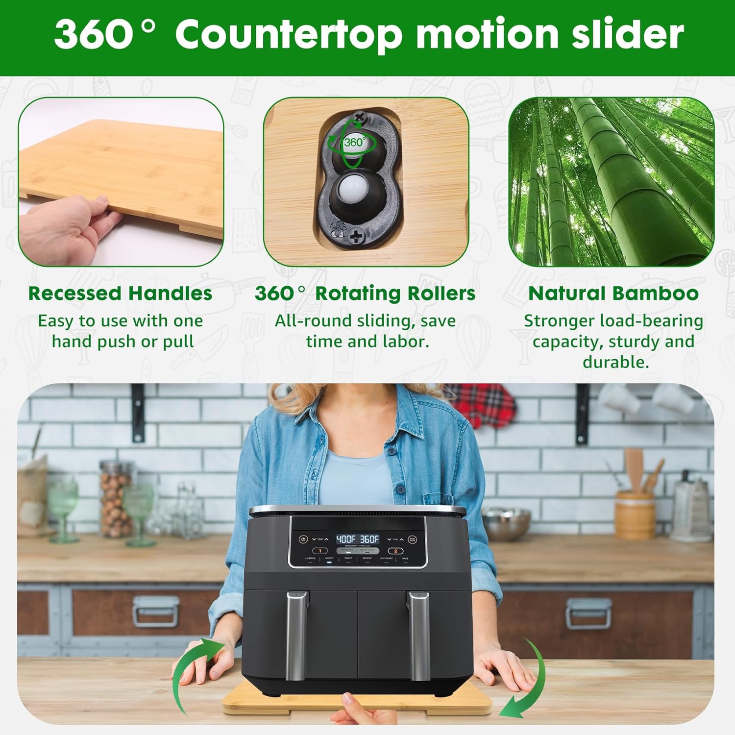 【360° Countertop Mobility】The appliance slider is equipped with 360° rollers for all-around mobility, making it easy to move various kitchen appliances.