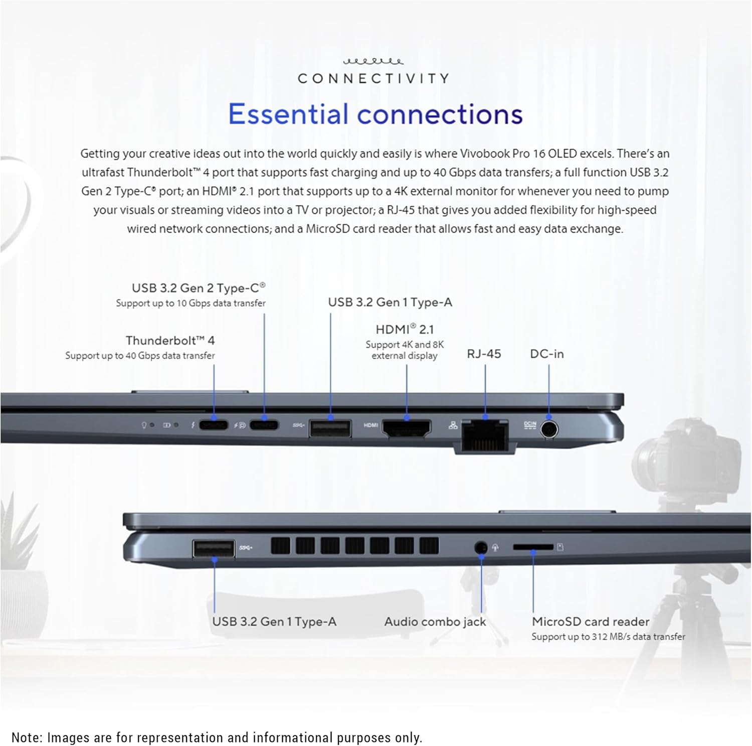 Description ASUS Antibacterial Guard Keyboard The surface of any laptop harbors thousands of potentially harmful bacteria. To keep Vivobook Pro 16 OLED hygienic, it’s protected by ASUS Antibacterial Guard – a surface treatment that keeps the bugs at bay. In fact, Antibacterial Guard has been scientifically proven to inhibit the growth of bacteria by more than 99% over a 24-hour period, ensuring the surfaces of your laptop clean and sanitary for longer and reducing the spread of potentially harmful bacteria via contact. Your passport to creativity Vivobook Pro 16 OLED delivers exceptional performance for all-day, every-day multitasking, with 13th Gen Intel Core i9 Processor and NVIDIA RTX 4060 graphics for the ultimate productivity and creativity. This GPU is built with the powerful graphics performance of the NVIDIA Ampere architecture. MUX SWITCH Vivobook Pro 16 gives you a clear advantage with its MUX switch. This sends graphics frames direct to the GPU without passing through the CPU, a cool trick that reduces latency and pumps up the refresh rate, so you can outpace the competition for more league-topping wins!