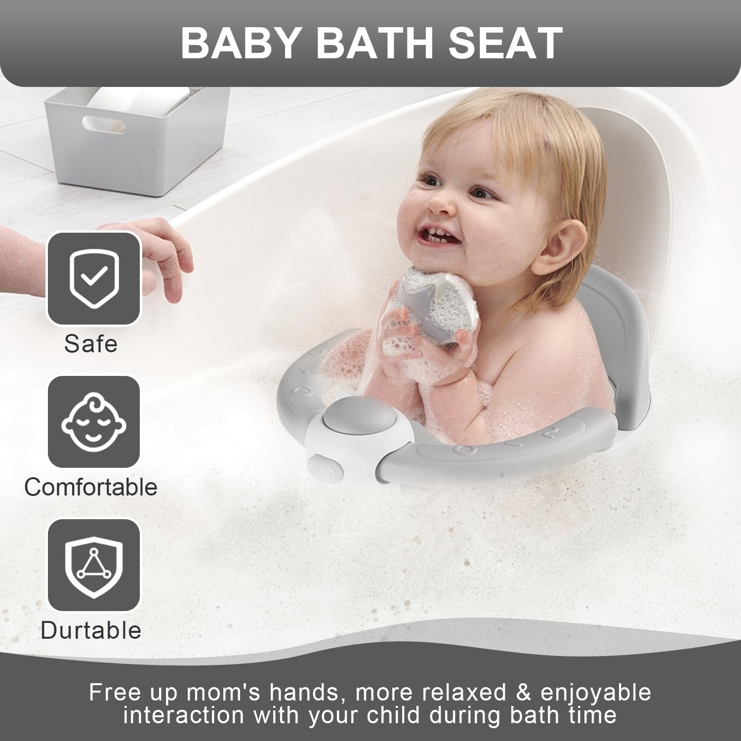 Baby Bath Seat for Babies 6 Months & Up, Bath Seats for Babies Sitting Up, Non-Slip Toddler Bath Seat, Baby Bathtub Seat with Suction Cup, Grey