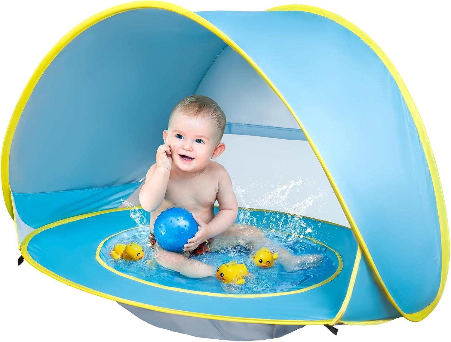 Baby Beach Tent PoP Up Shade, UV Production Baby Beach Pool, Beach Essentials for Kids Beach Tent, Portable Toddler Beach Tent, Toddler Mini Tent(Blue)