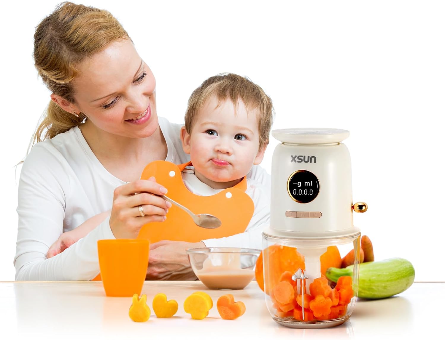 👶🏻【Customize Different Flavor】 This all-in-one food processor is designed to help you prepare healthy and delicious purees, juices, and smoothies for your baby in just a few minutes. Easily chop a variety of vegetables, meats and fruits to different particle sizes according to your needs.