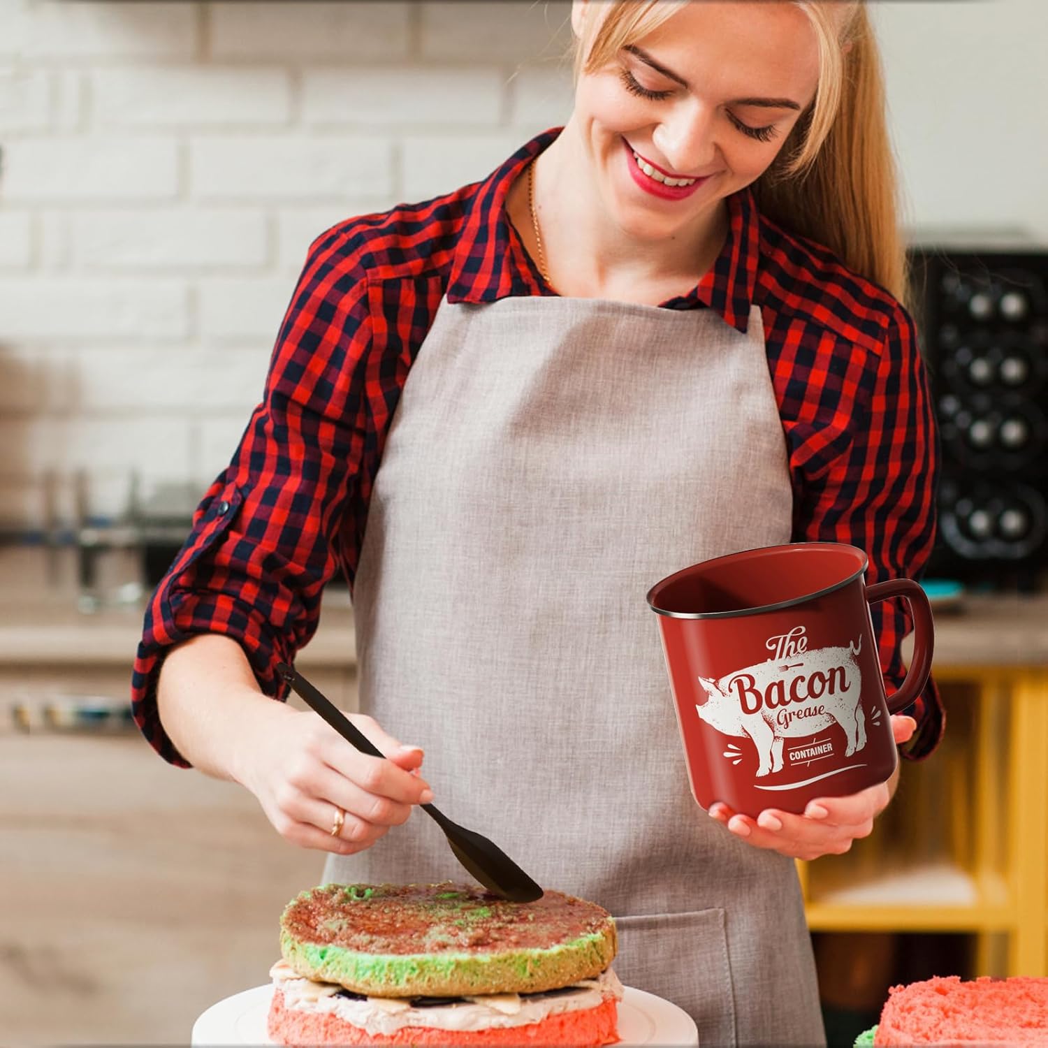 [Large Capacity & Stylish Design] – The bacon grease keeper holds 46 OZ of grease, which is functional for both straining, storing, and transferring. The large capacity container made of enamel, helps the grease temperature to drop quickly and evenly. The stylish cup wall pattern makes up its retro farmhouse style, this grease container is a beautiful and practical gift for any cooking enthusiast and chef.