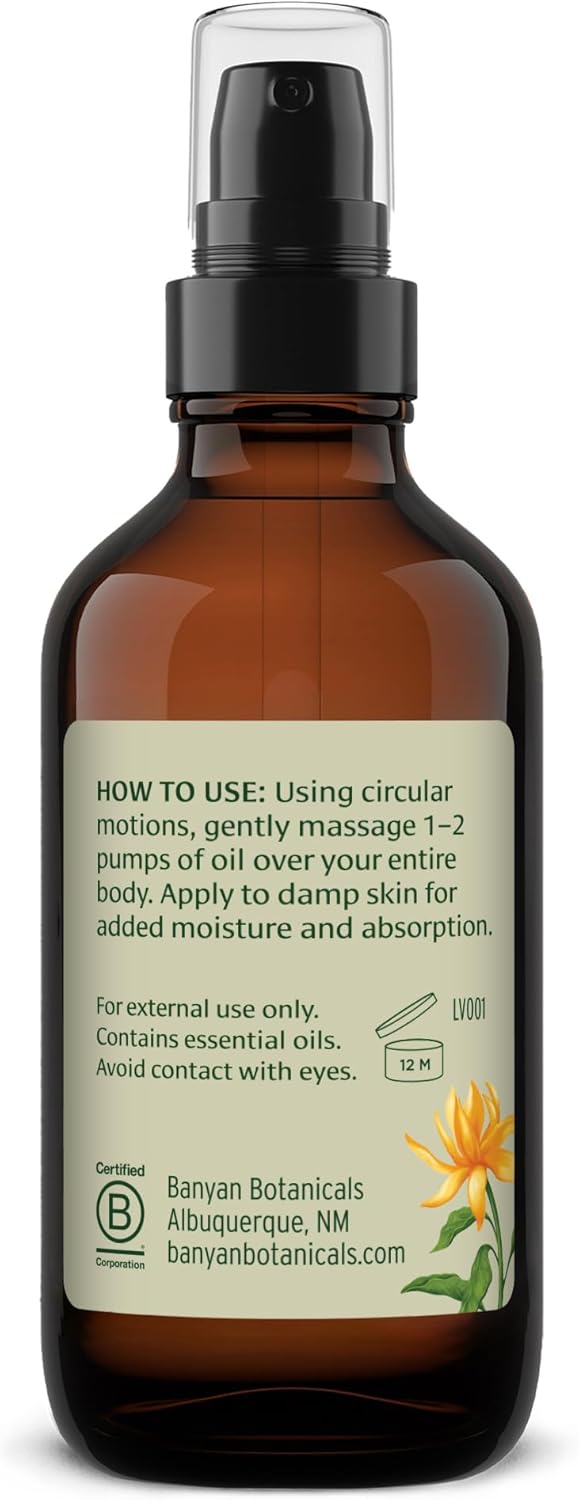 Banyan Botanicals Body Oil – Lightweight & Non-Greasy Body Oil – Ayurvedic Skin Care with Organic Jojoba Oil for Soft, Smooth Skin – 4 oz – Non-GMO, Cruelty Free, Paraben Free Massage Oil