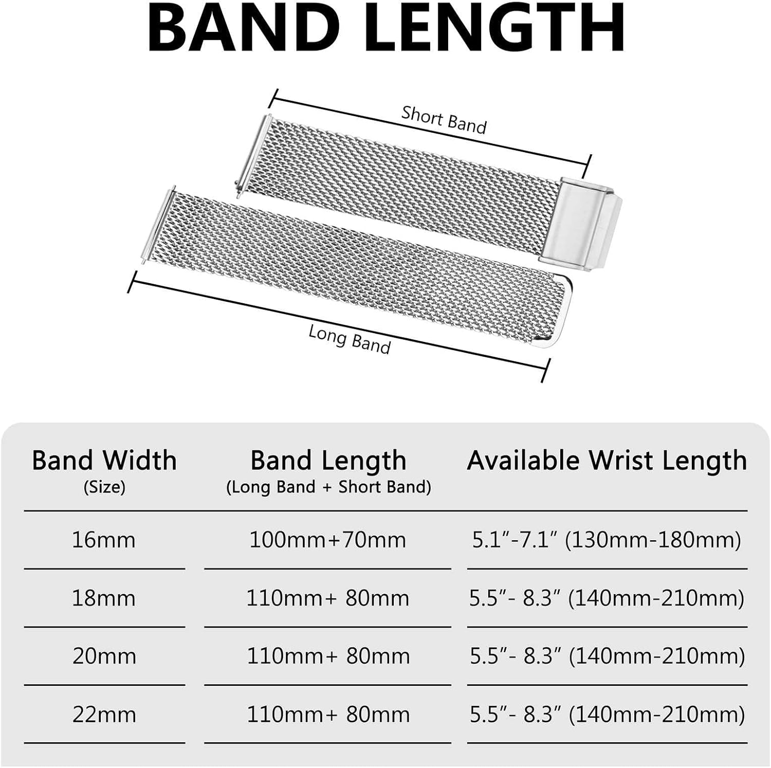 BISONSTRAP Metal Mesh Watch Band for Women and Men, 316L Stainless Steel Woven Watch Strap, Band Width 16mm 18mm 20mm 22mm