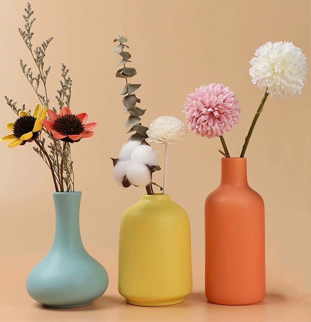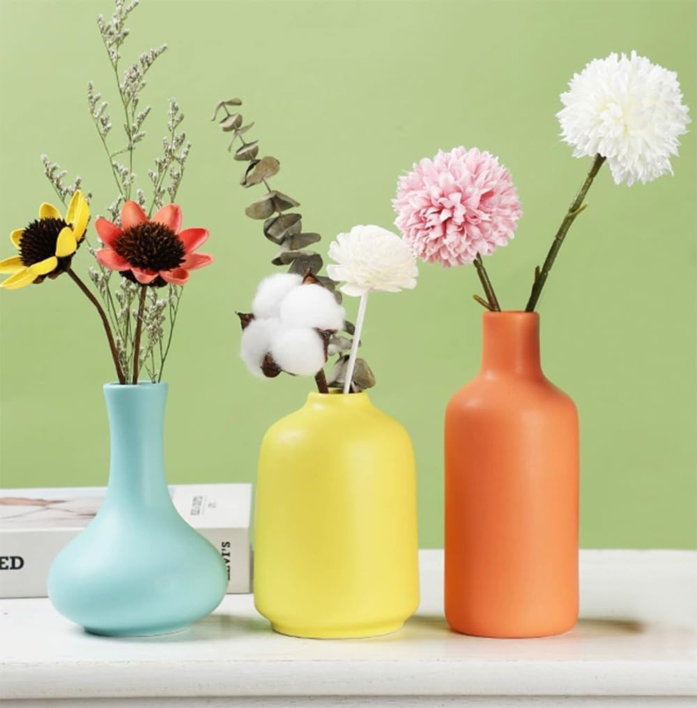 Ceramic Colorful Flower Vase for Home Desk Bookshelf Decor Modern Farmhouses Tabletop Small Cute Vases,Set of 3