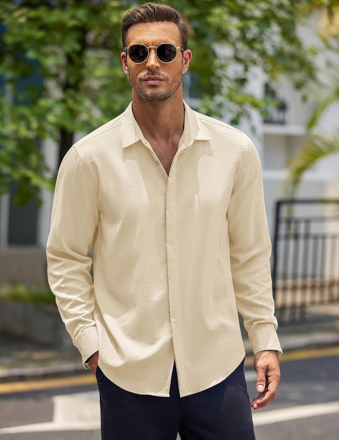 COOFANDY Men’s Casual Shirt Long Sleeve Casual Button Down Shirt for Men Summer Beach Wedding Shirt
