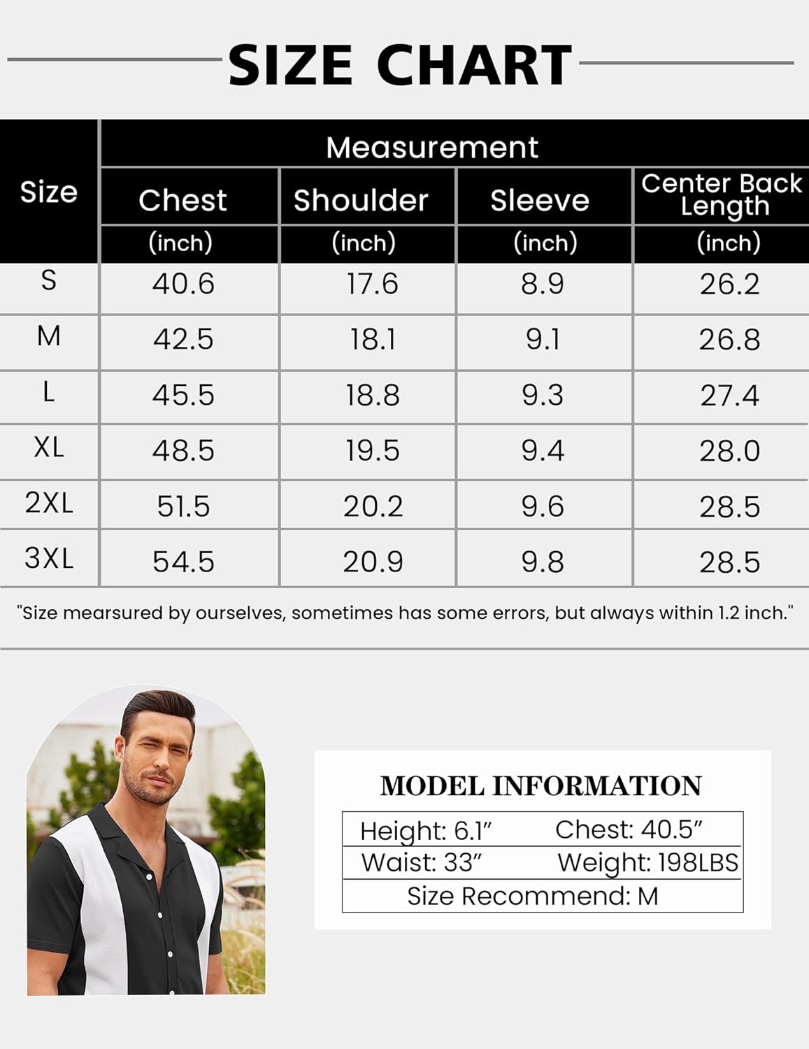 COOFANDY Mens Polo Shirts Vintage Bowling Shirt Casual Button Down Shirts Short Sleeve Knit Shirt Summer Hawaiian Beach Shirt